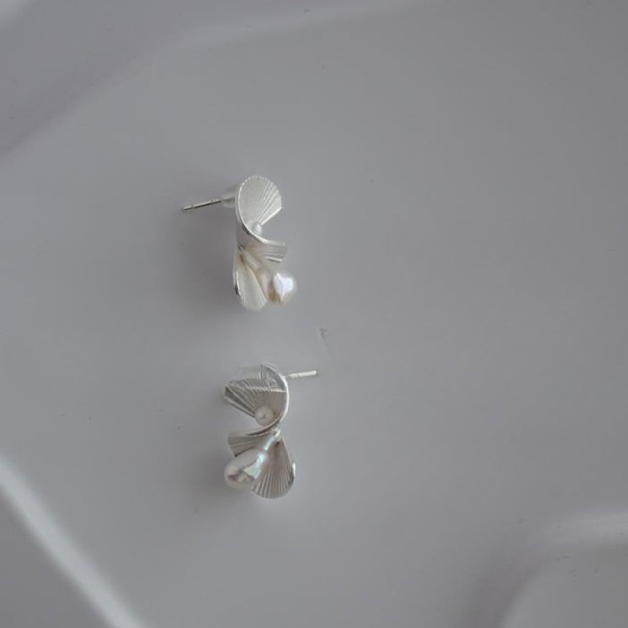 スタイリッシュなツイストシェルピアスで、美しいシルエットが魅力です。