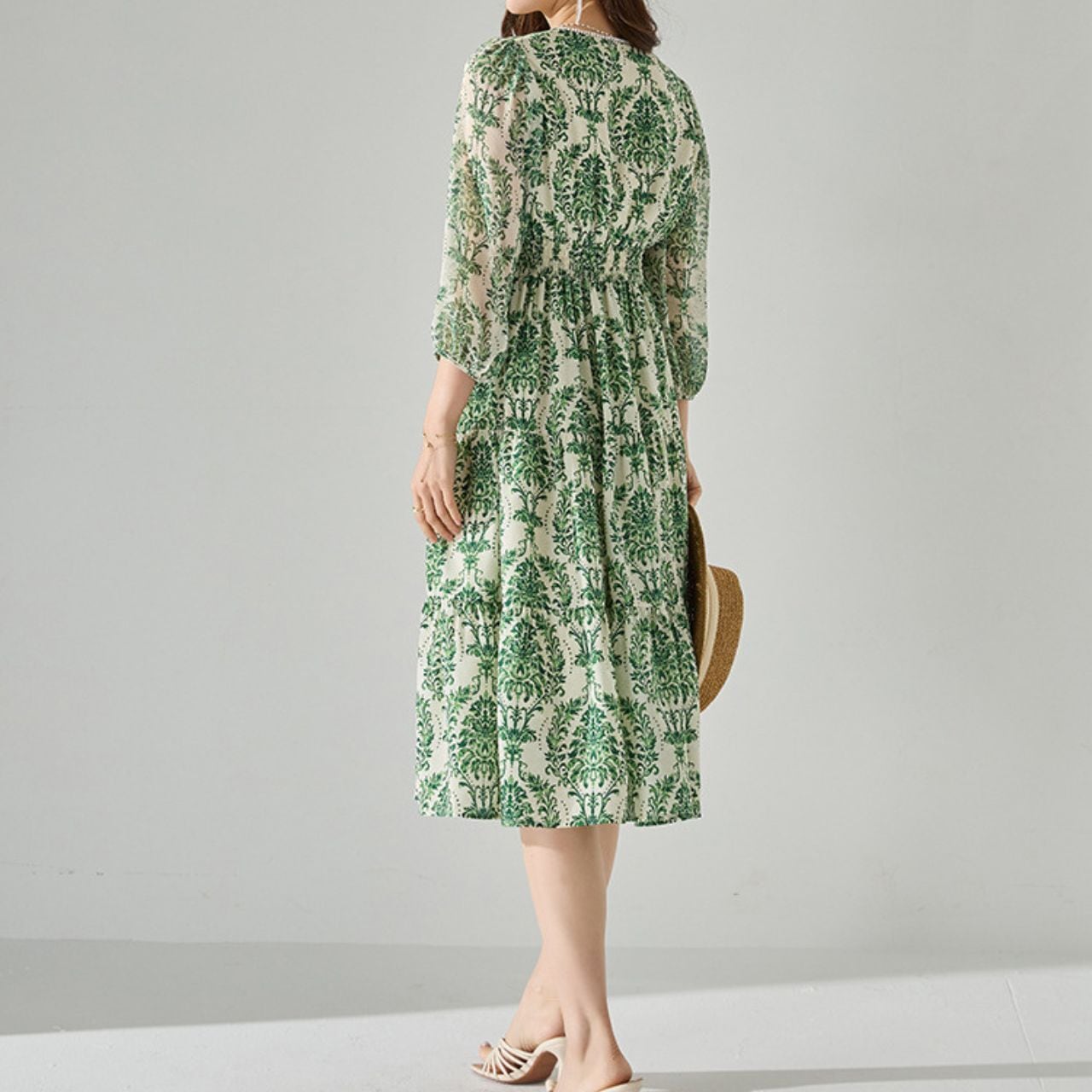 ハイウエストボタニカルグリーンワンピース 3218