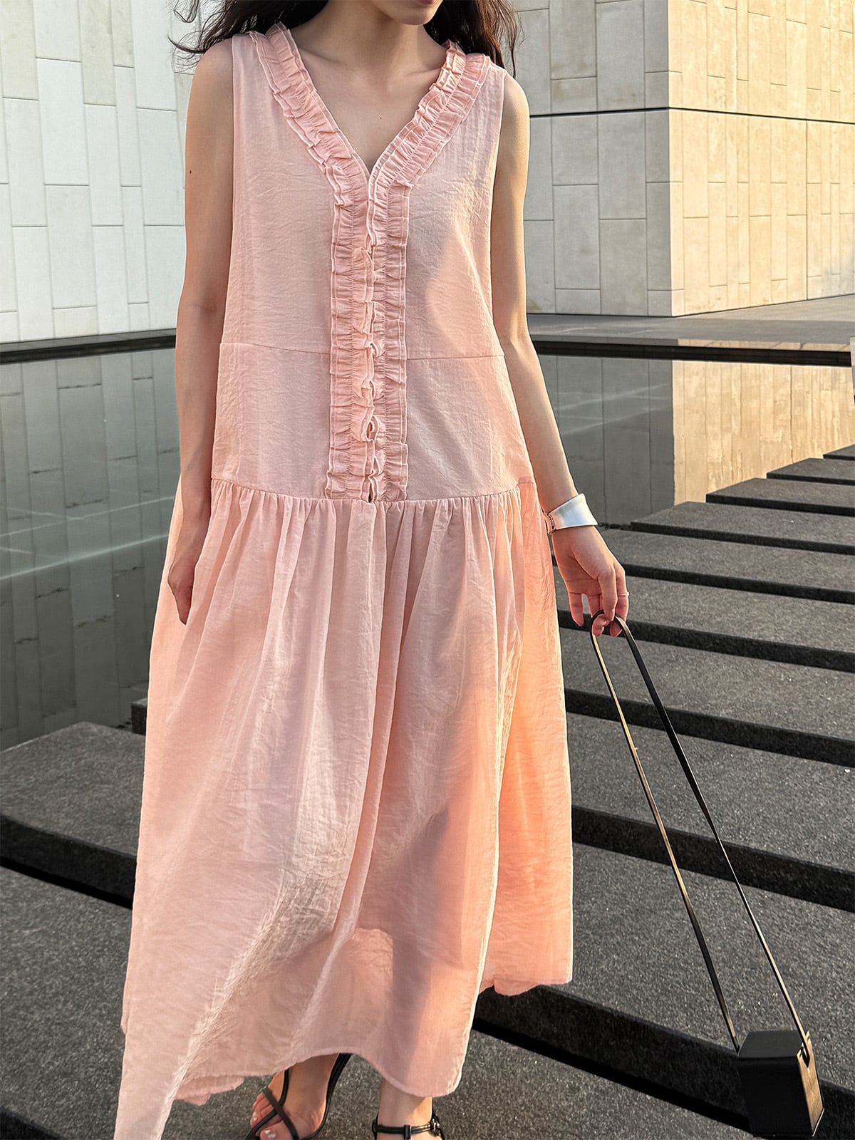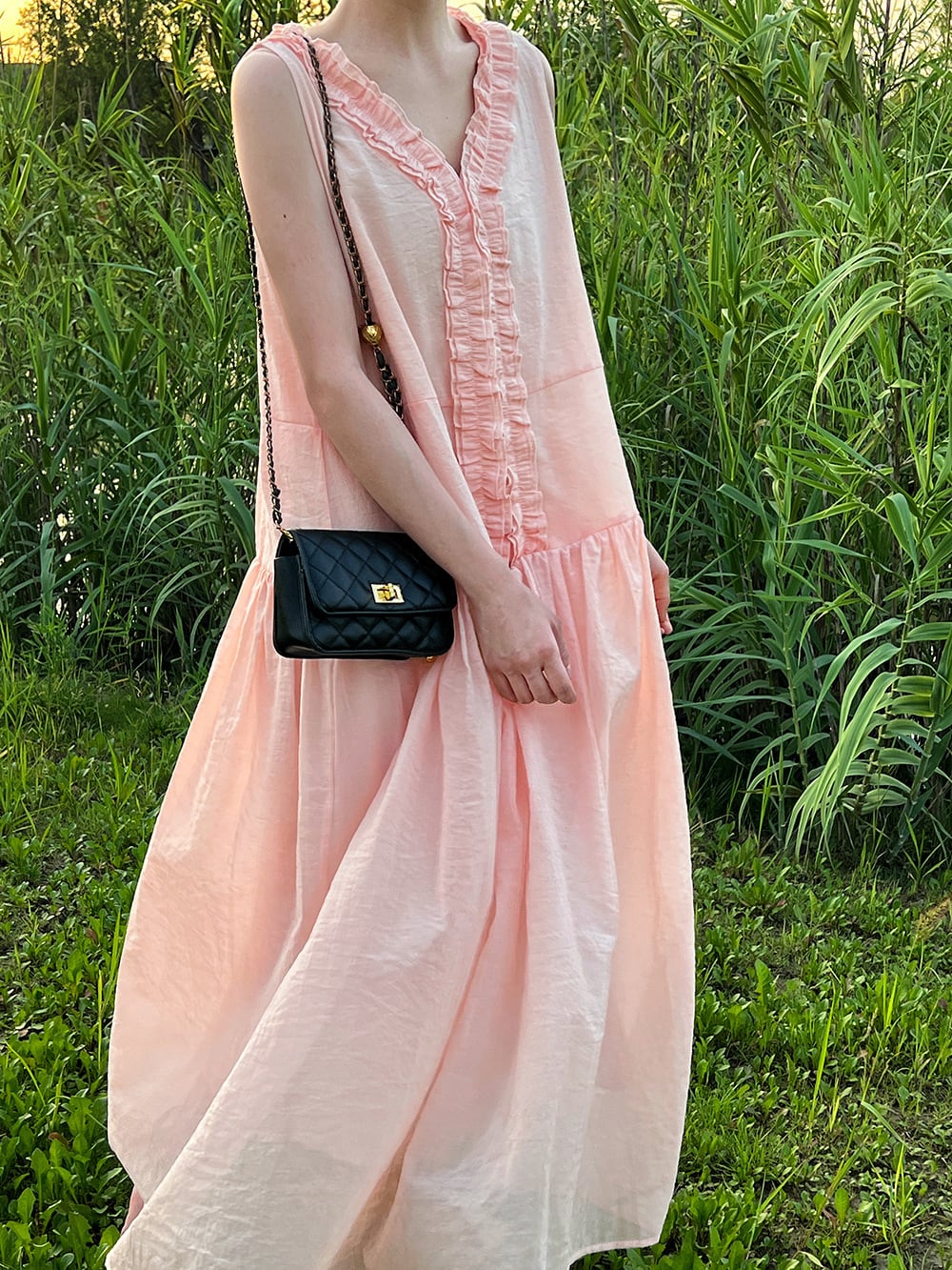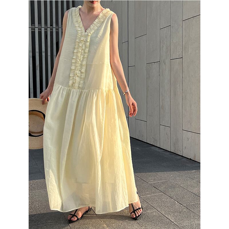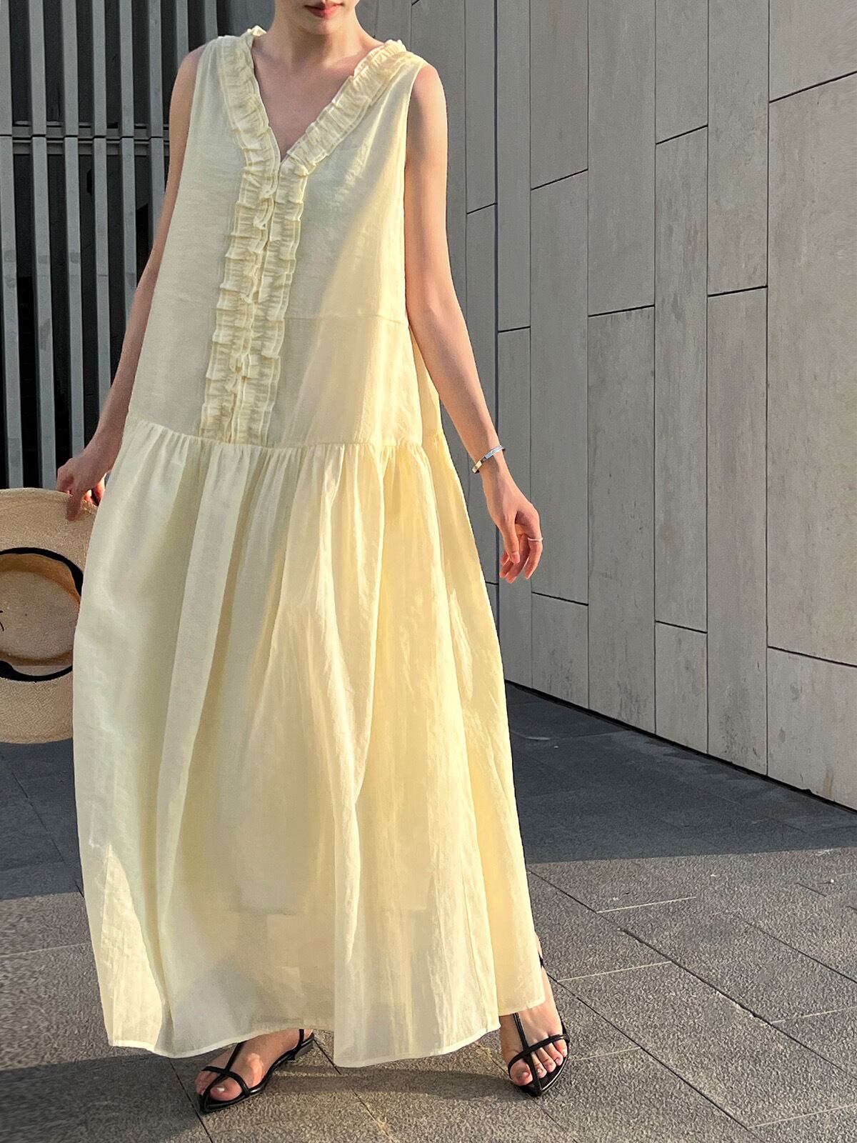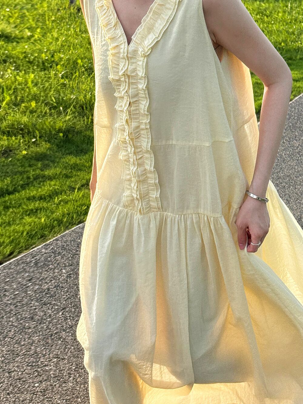 フリルギャザーノースリーブワンピース 3242