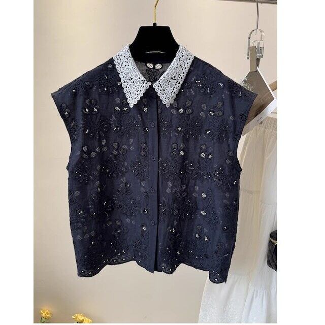 異なるレースとカラーの組み合わせが個性的で、洗練された印象を与えます。デザイン性豊かなレース襟が顔周りを明るく演出し、カジュアルからフォーマルまで幅広いシーンで活躍します♪