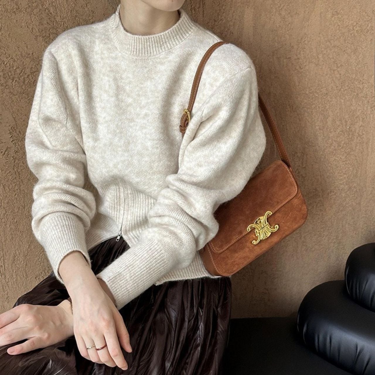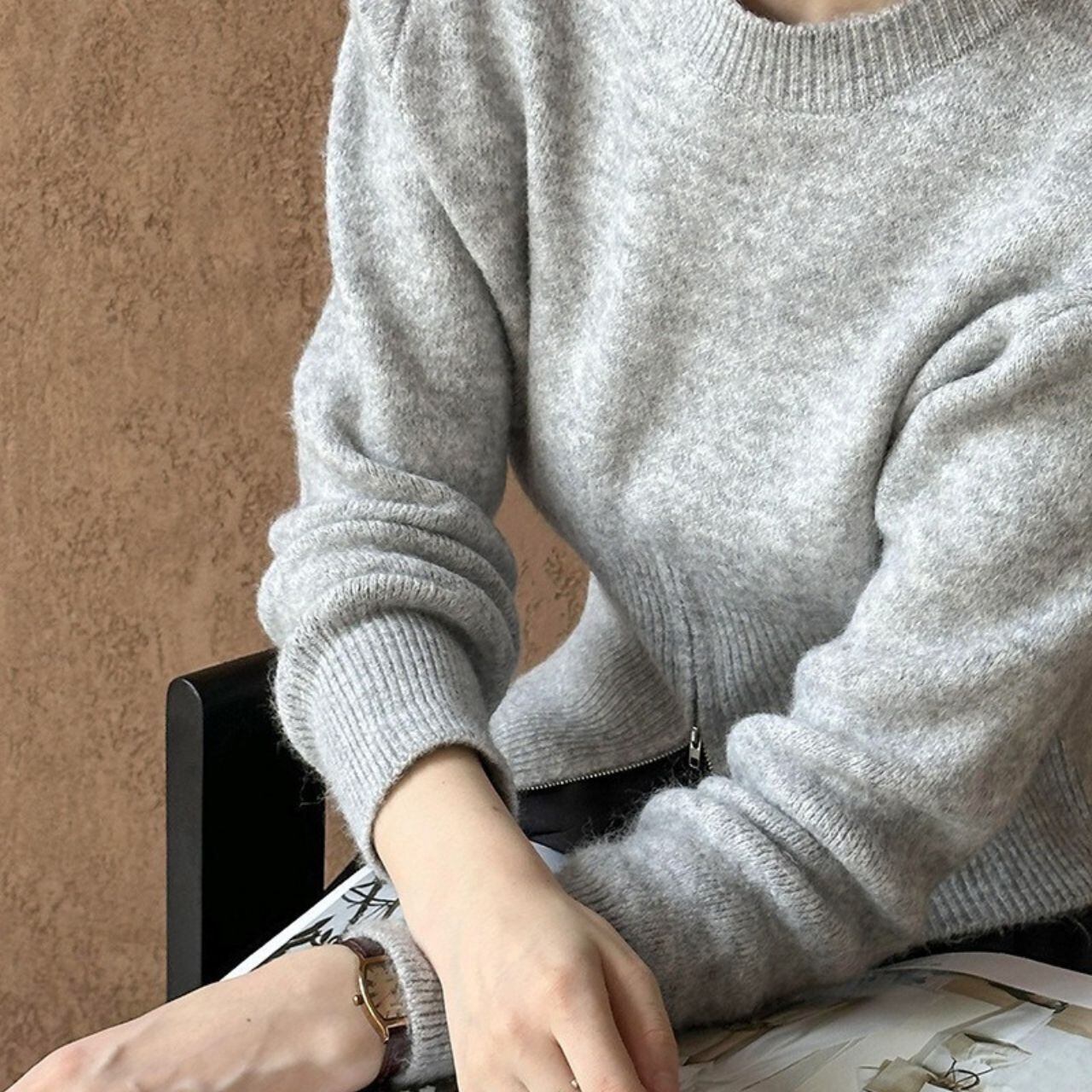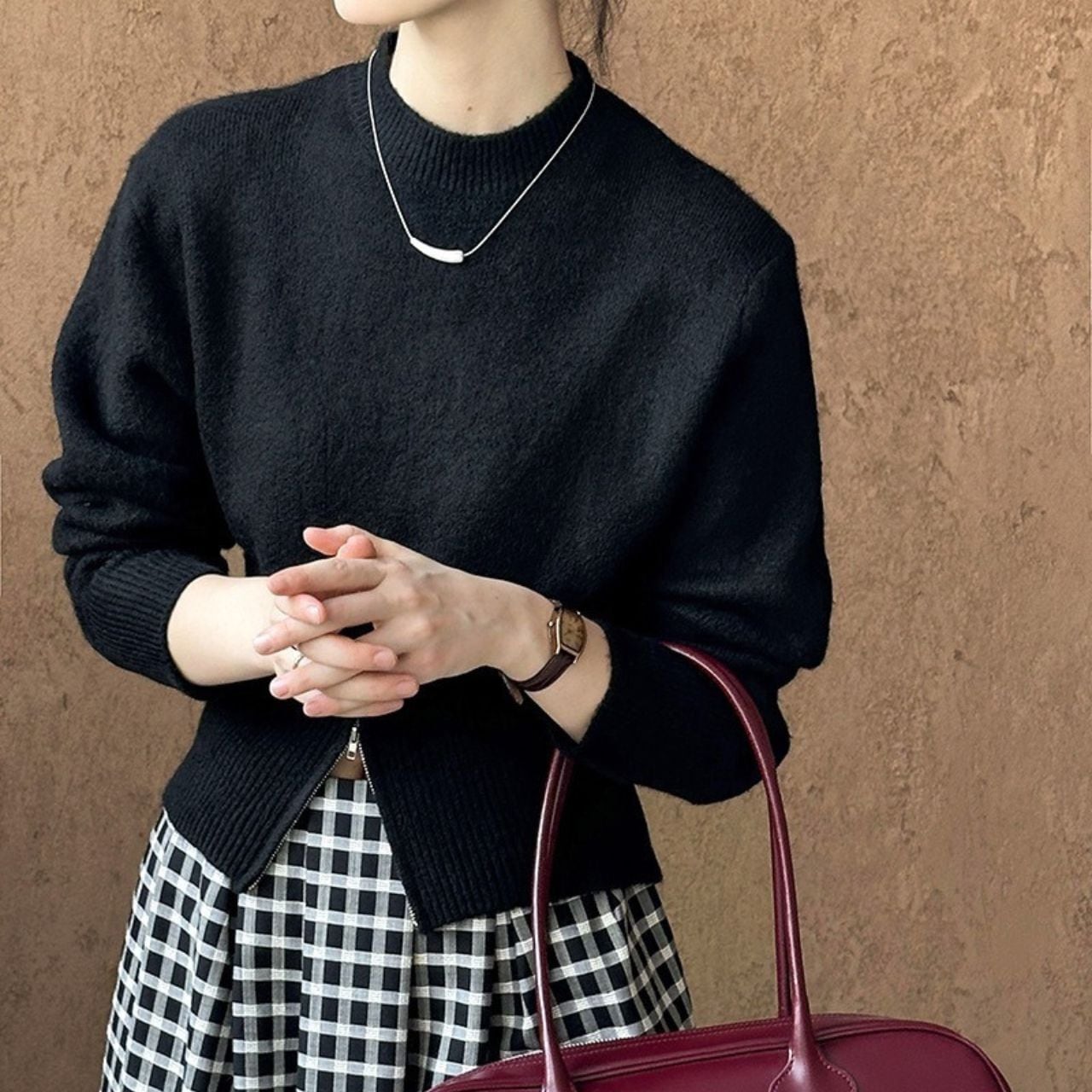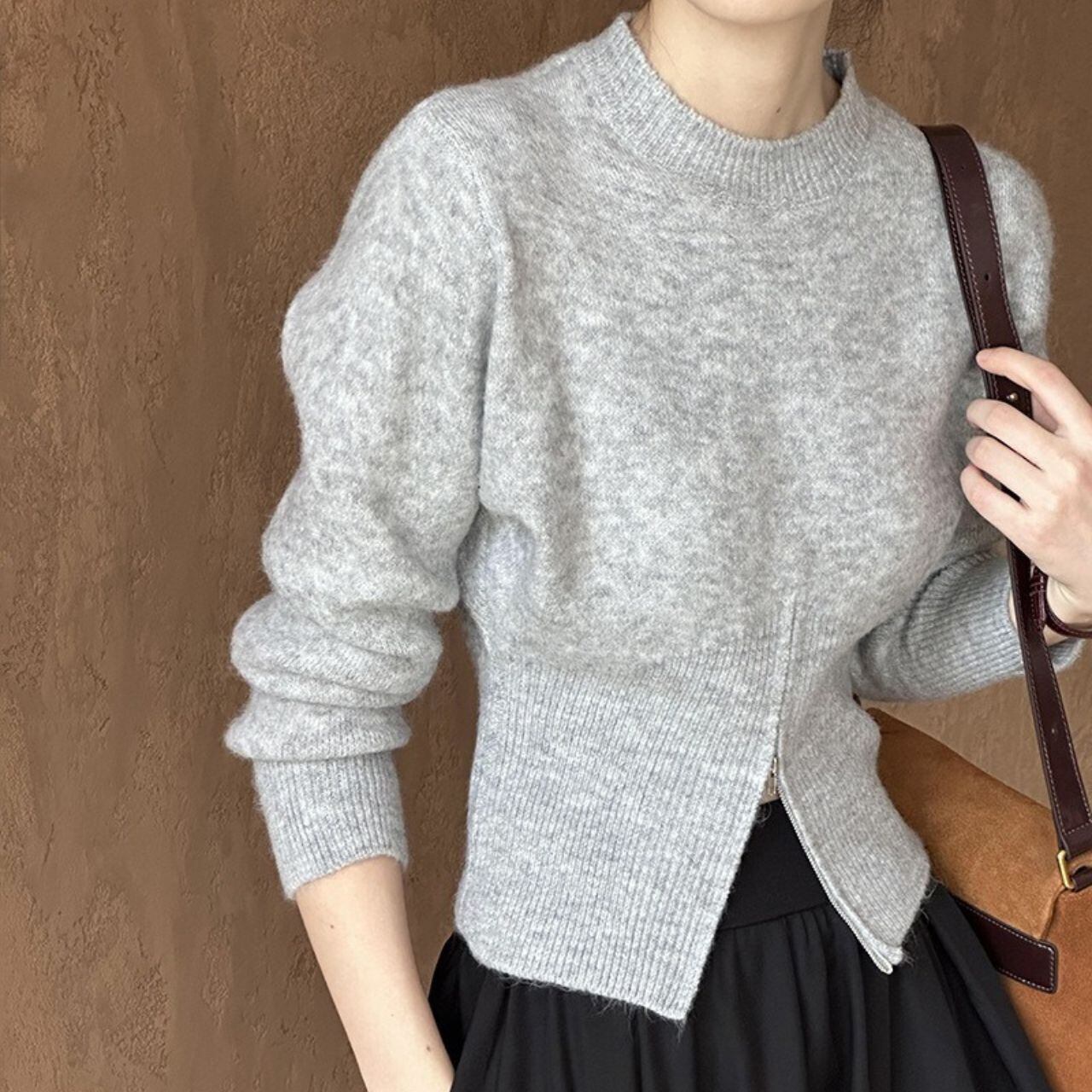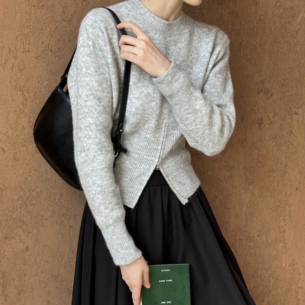 シンプルながらも個性光る裾ファスナーデザインのニットトップス。