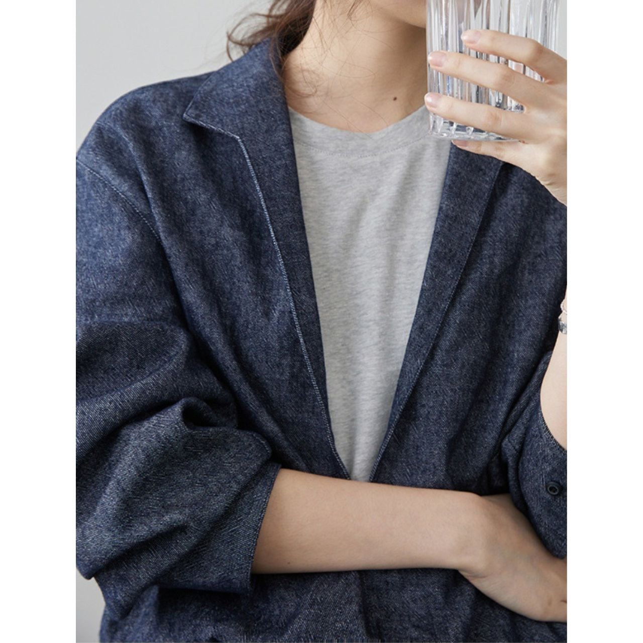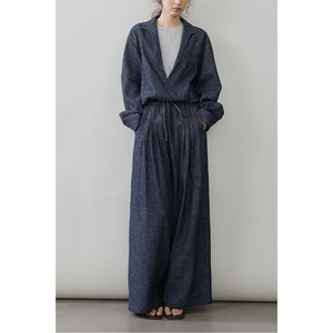 シンプルながらもおしゃれなデニムトップスとワイドパンツのセットです。