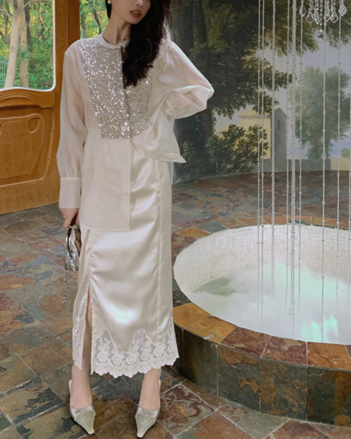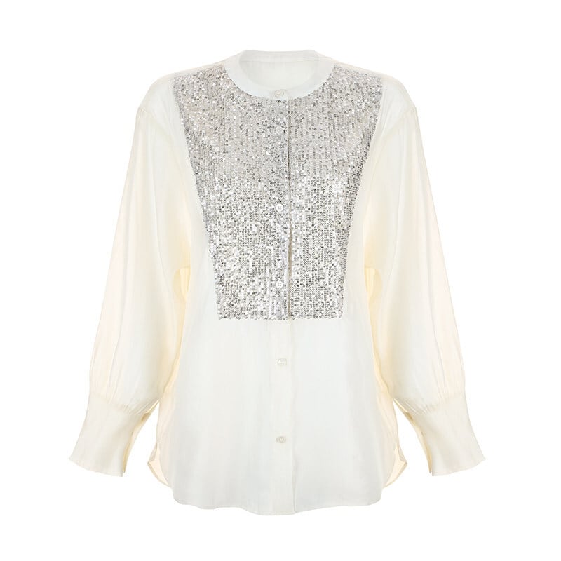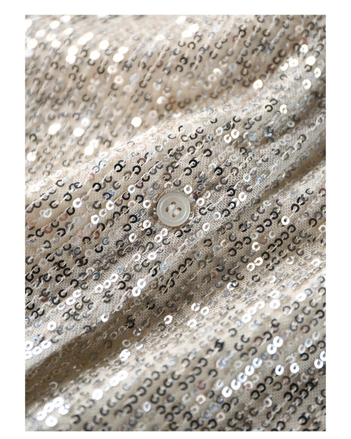胸元のデザインとスパンコールは、光の加減で異なる表情を見せ、シーンに合わせて多様なスタイルを楽しめます。カジュアルにもモードにも自在にアレンジ可能で、あなたのファッションセンスを引き立てます。