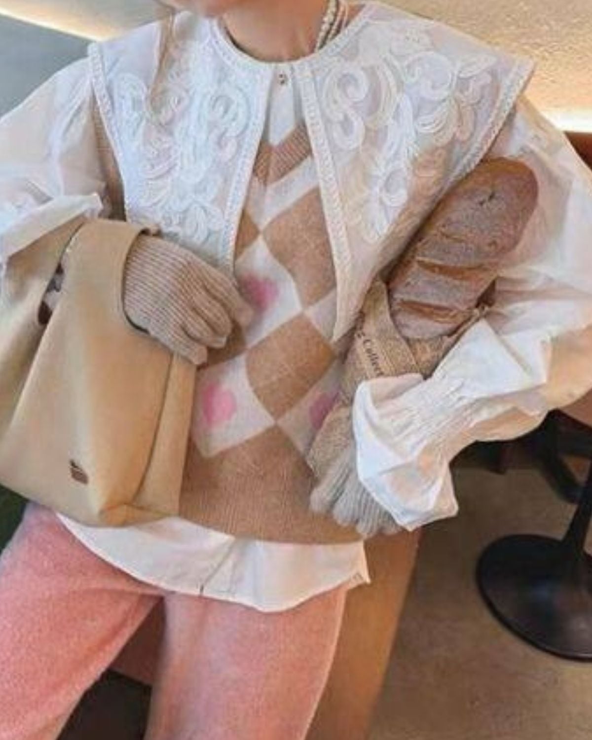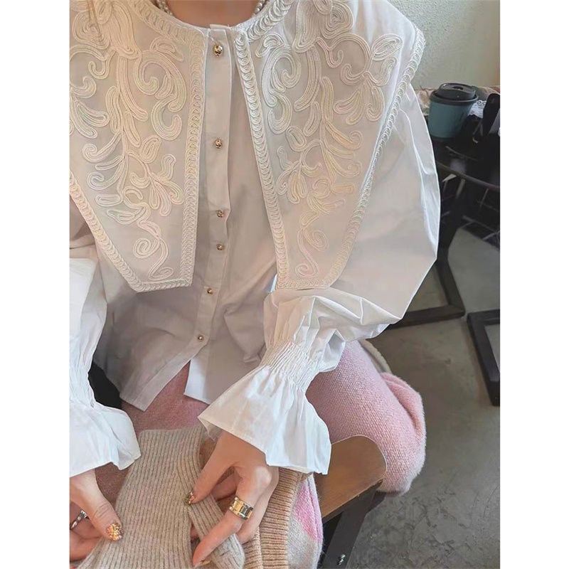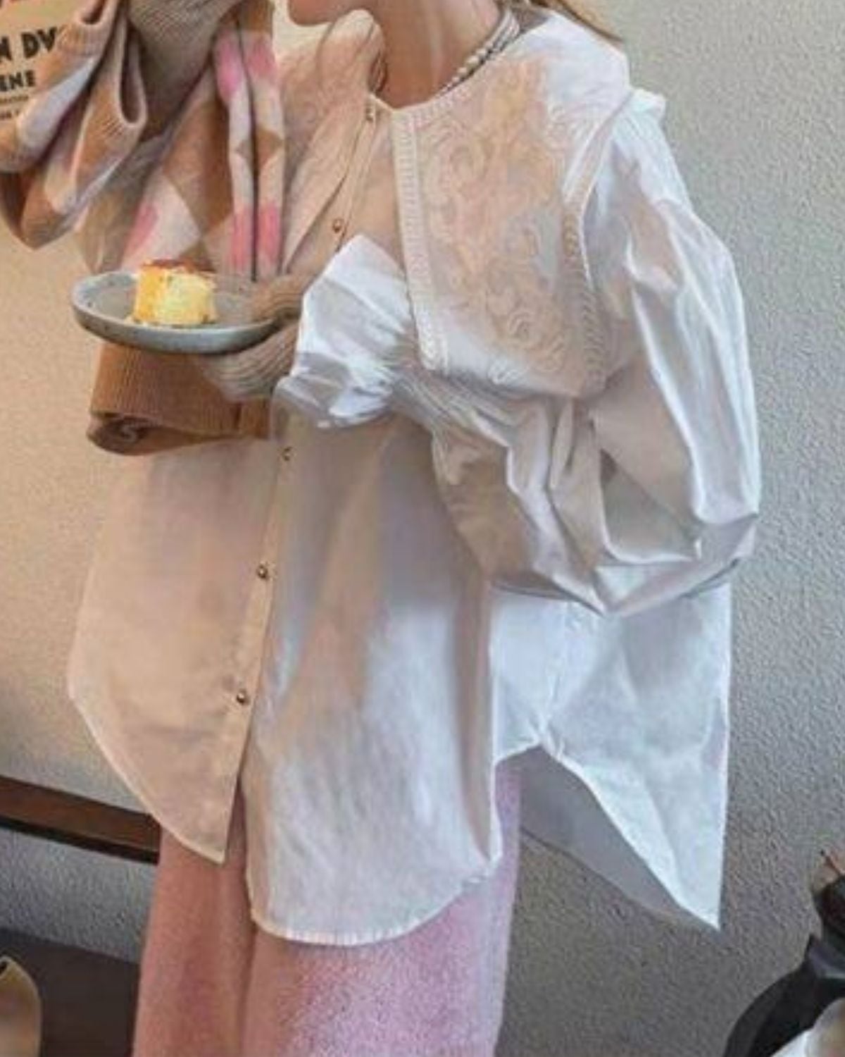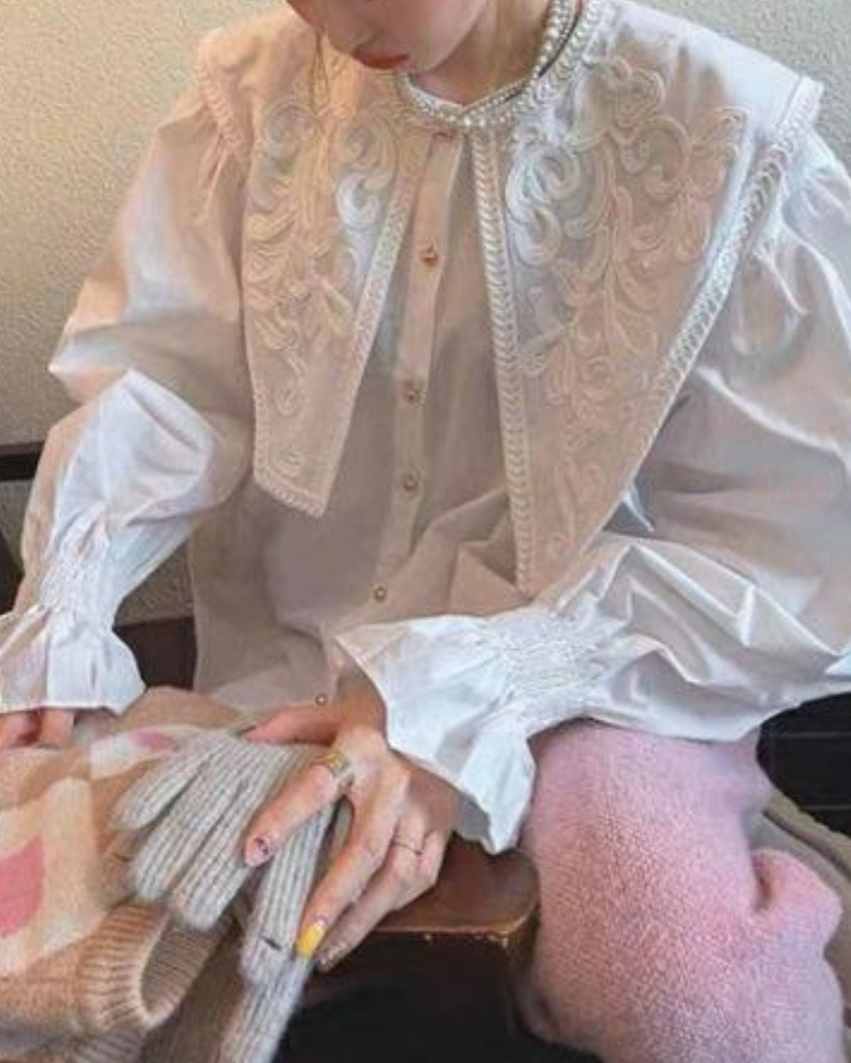 エレガント刺繍デザインカラーホワイトブラウス 3286