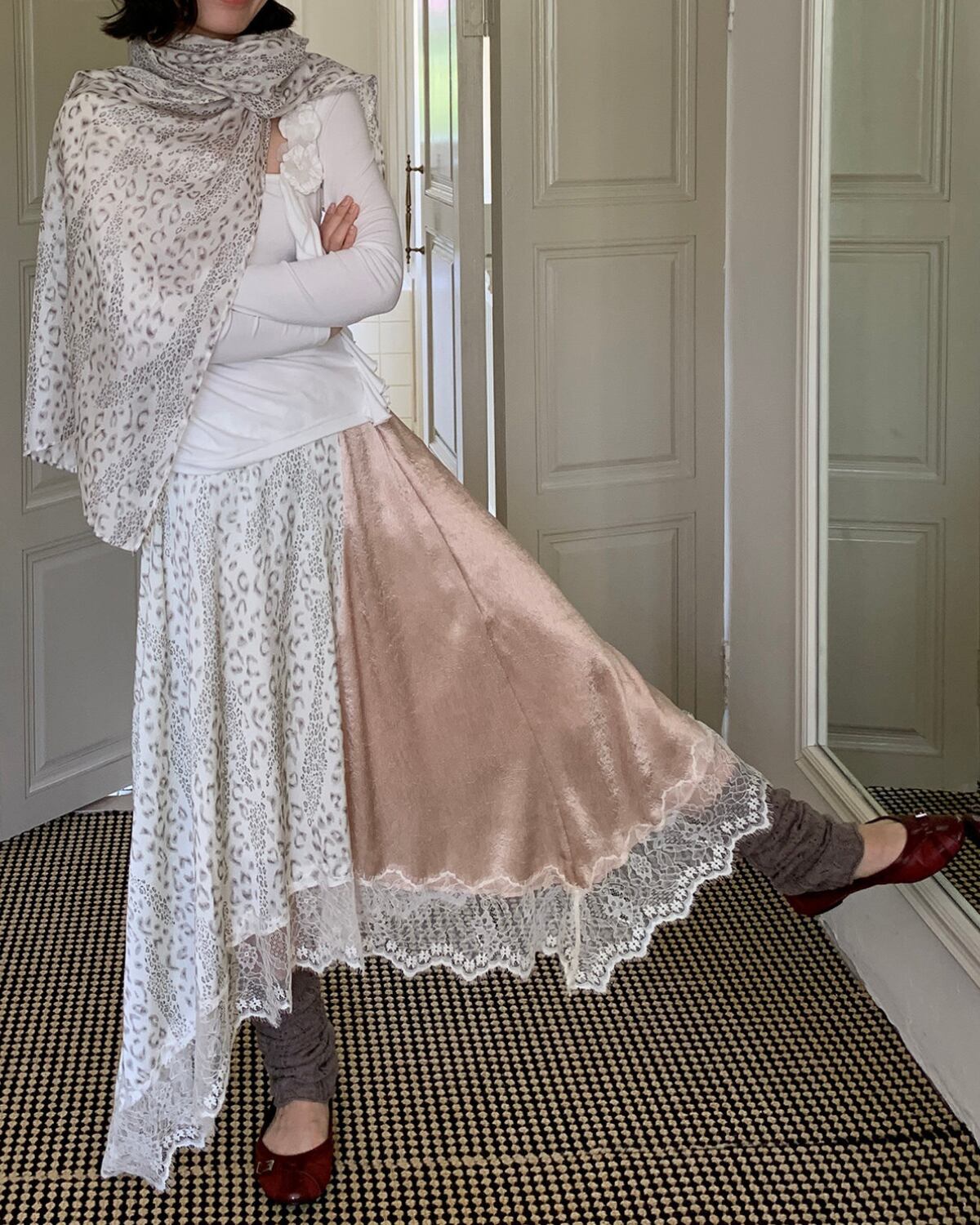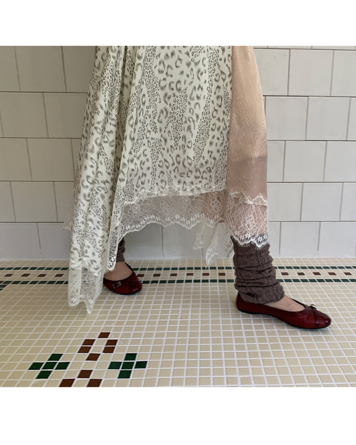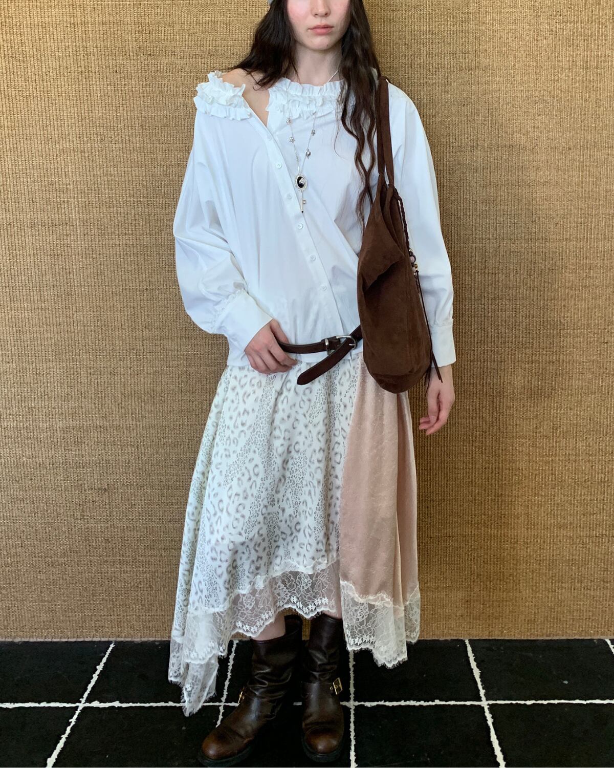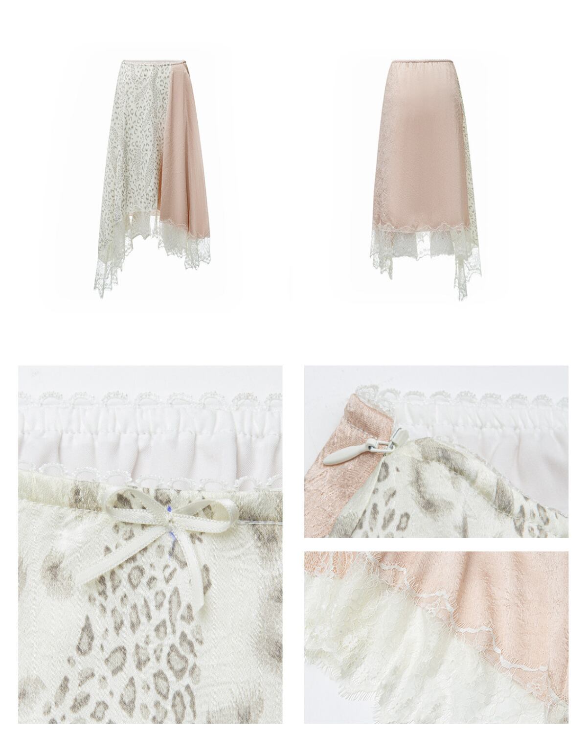 ホワイトレオパード柄アシンメトリーサテンレーススカート