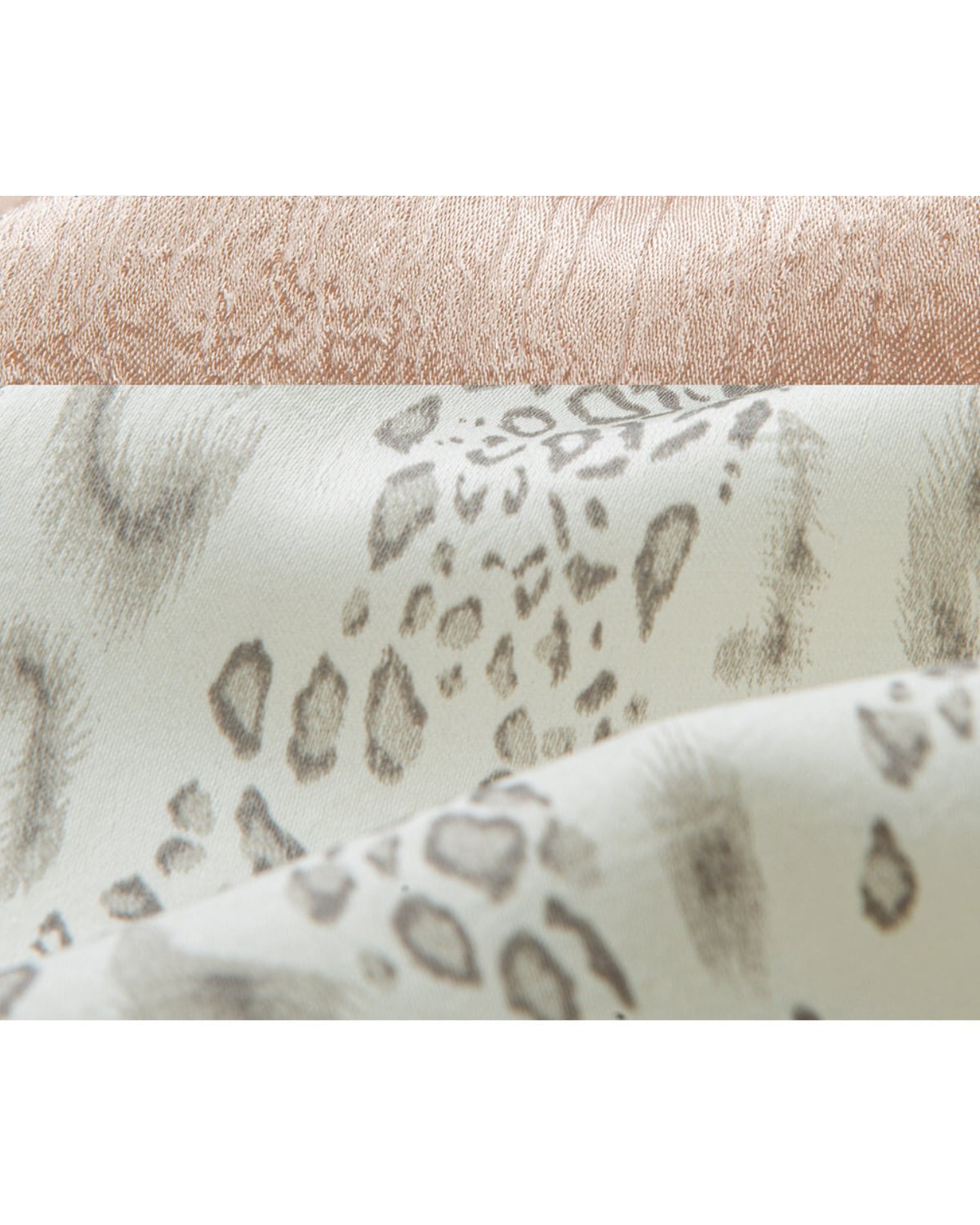 ヒョウ柄のパッチワークプリーツが重なり合い、華やかさを演出します。特別なシーンにもデイリーカジュアルにもマッチする一枚です。