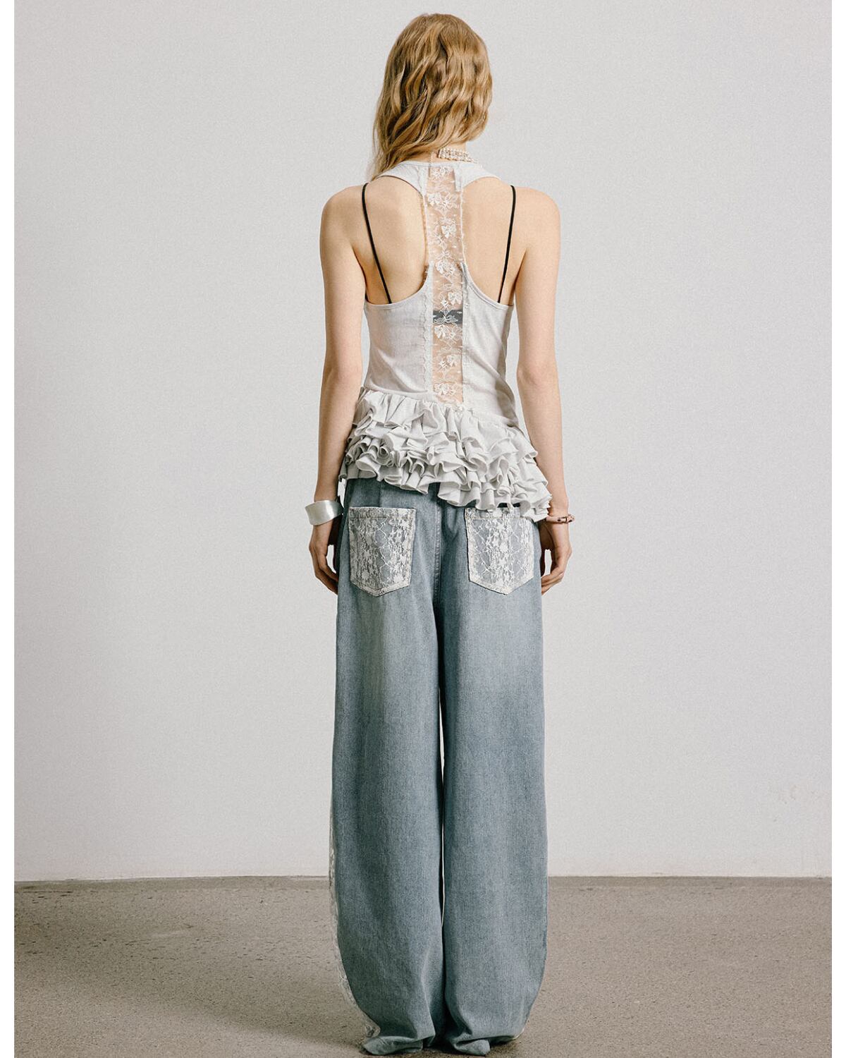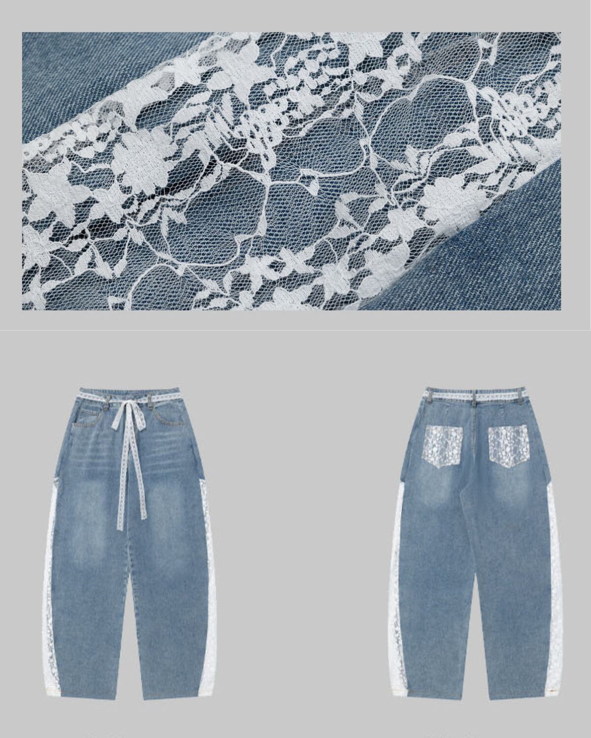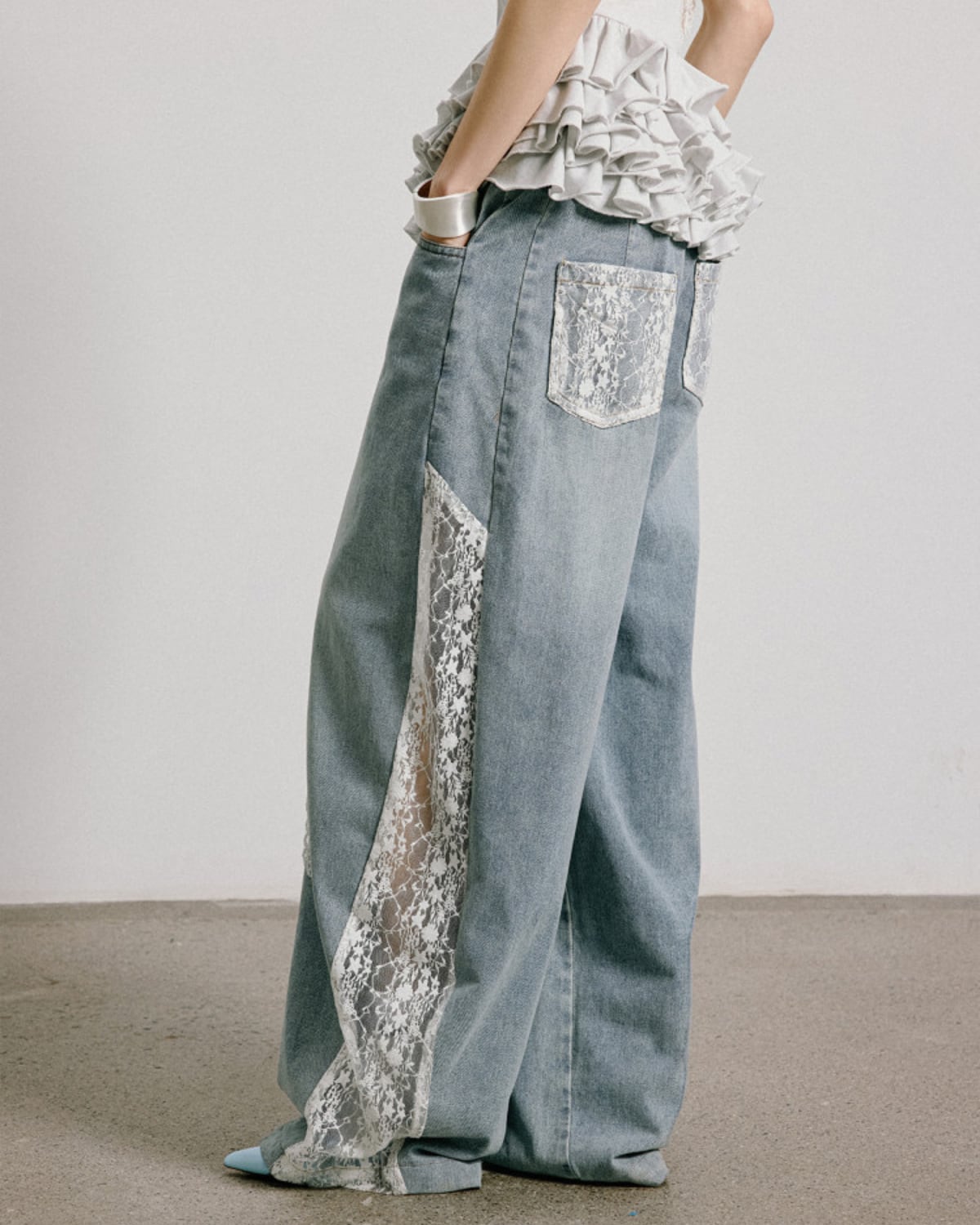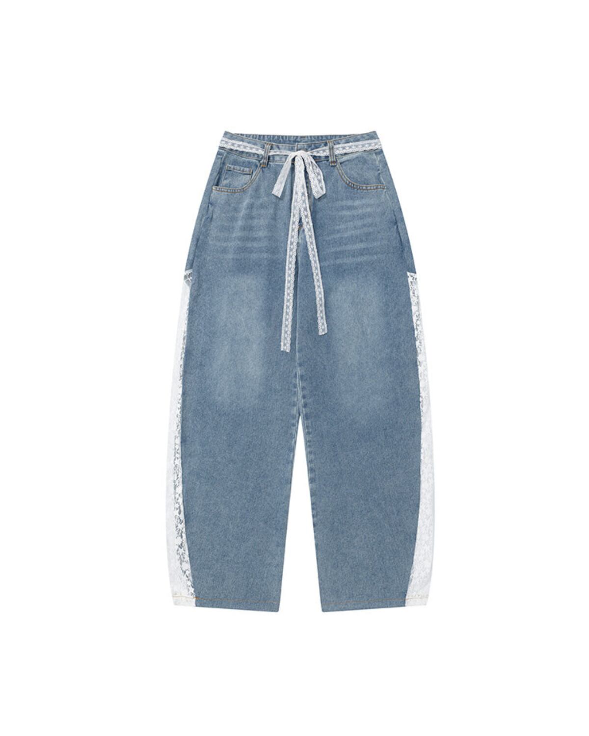 レースパッチワークデザインワイドデニムパンツ 3316