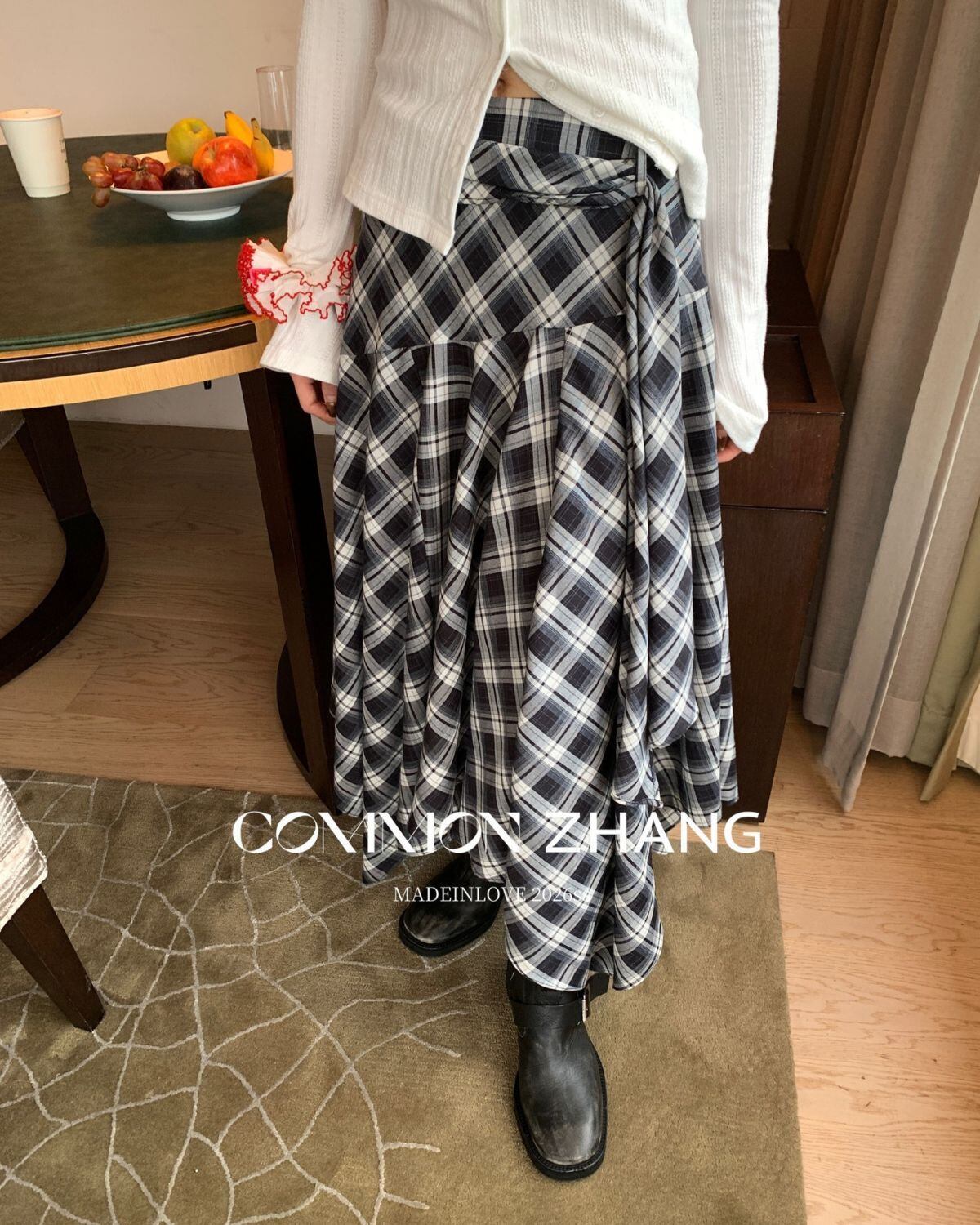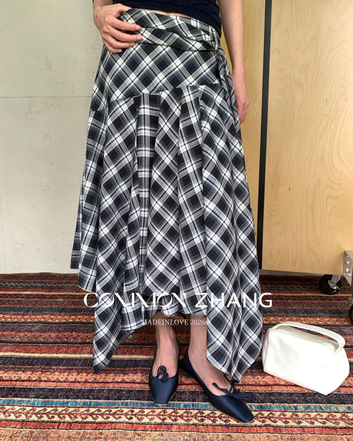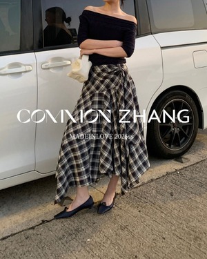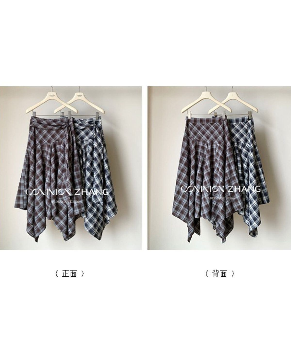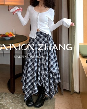 アシメントリーヘムチェックスカート 3319
