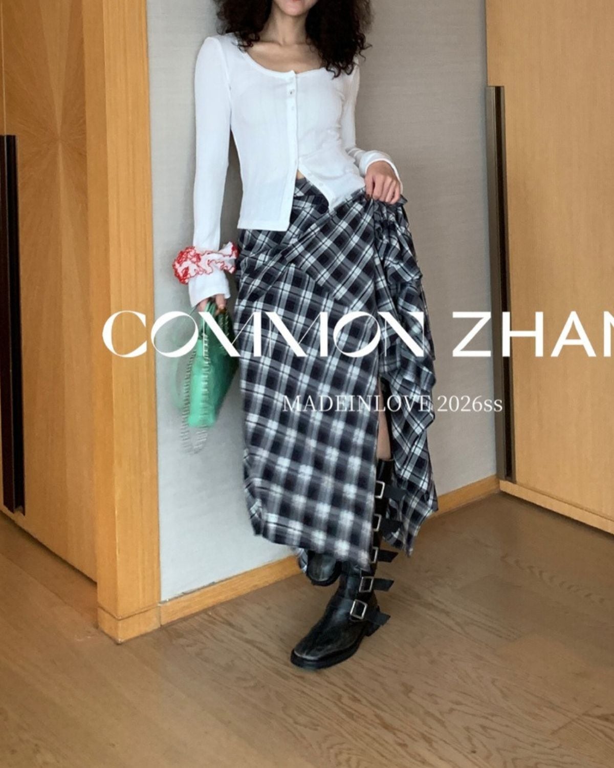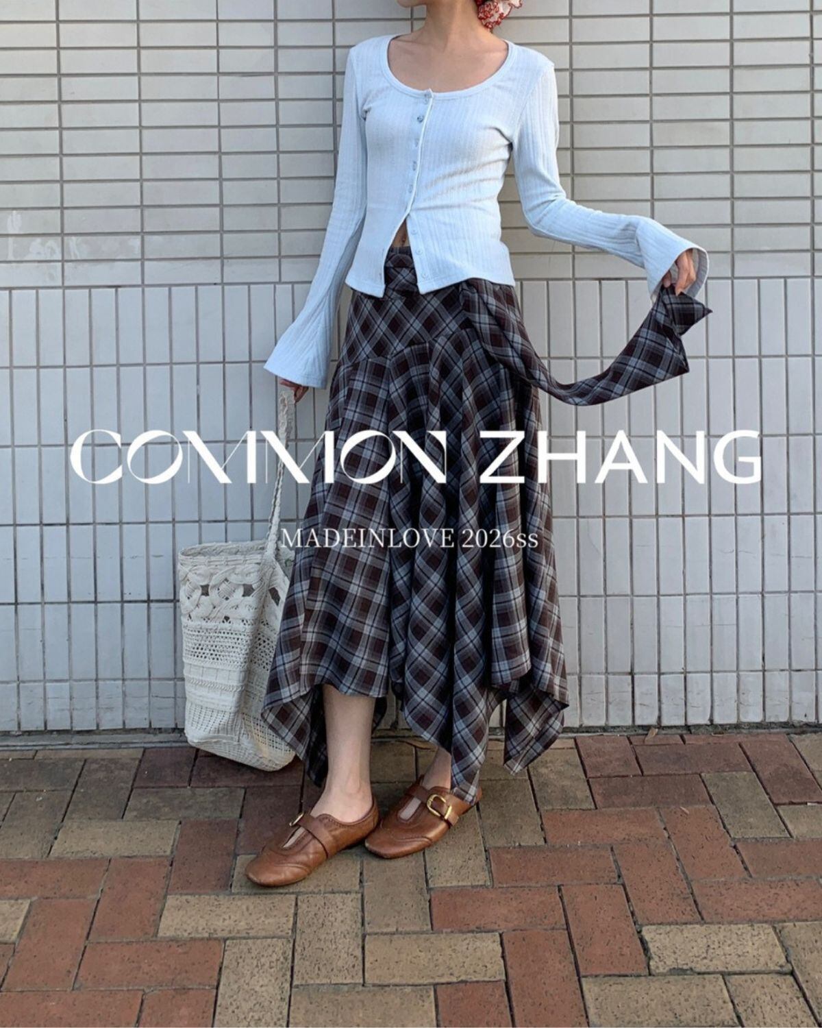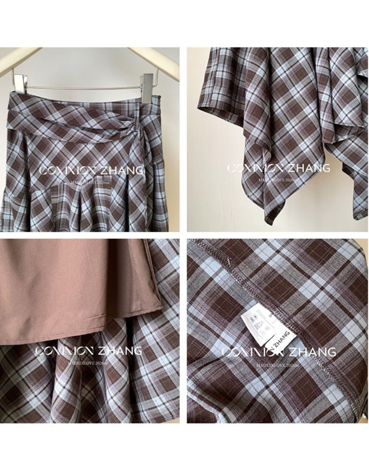 アシメントリーヘムチェックスカート 3319