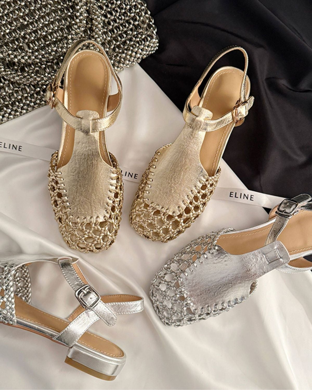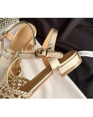 メタリックメッシュアンクルサンダル 3322
