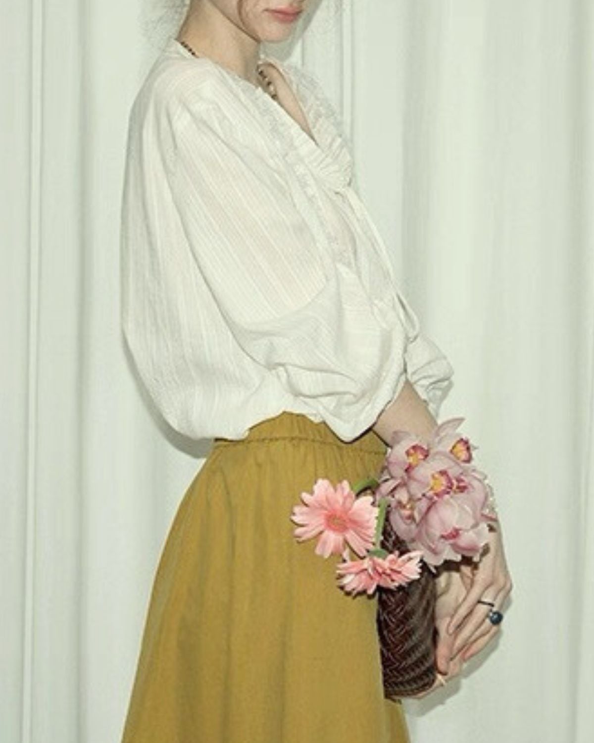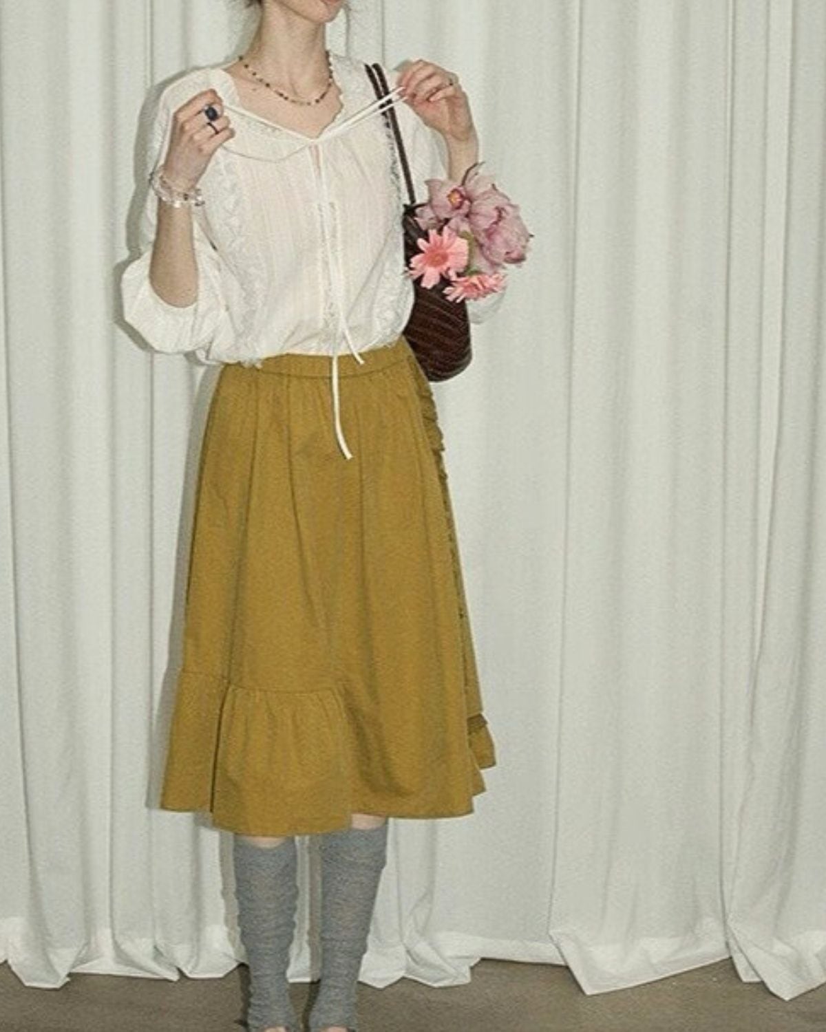 透け感のある軽やかな素材で、ヴィンテージのような趣があるデザインです。