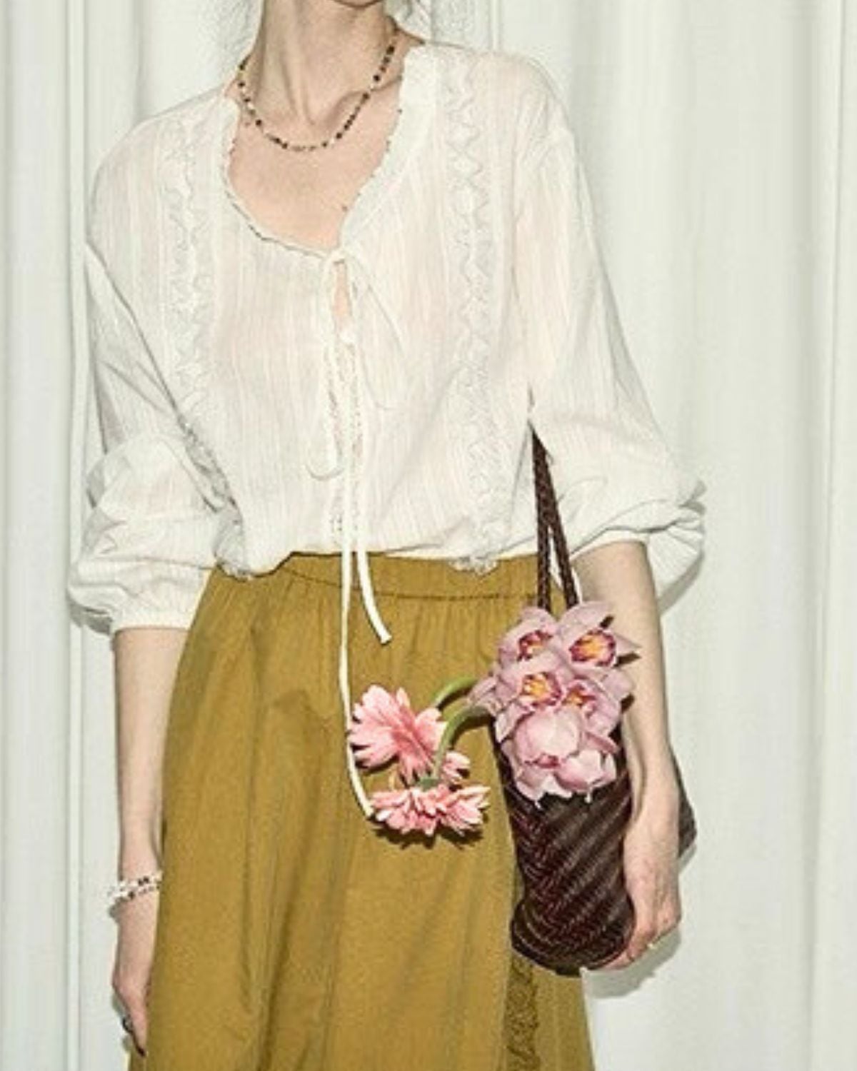 フリルカラーフロントリボンブラウス 3329