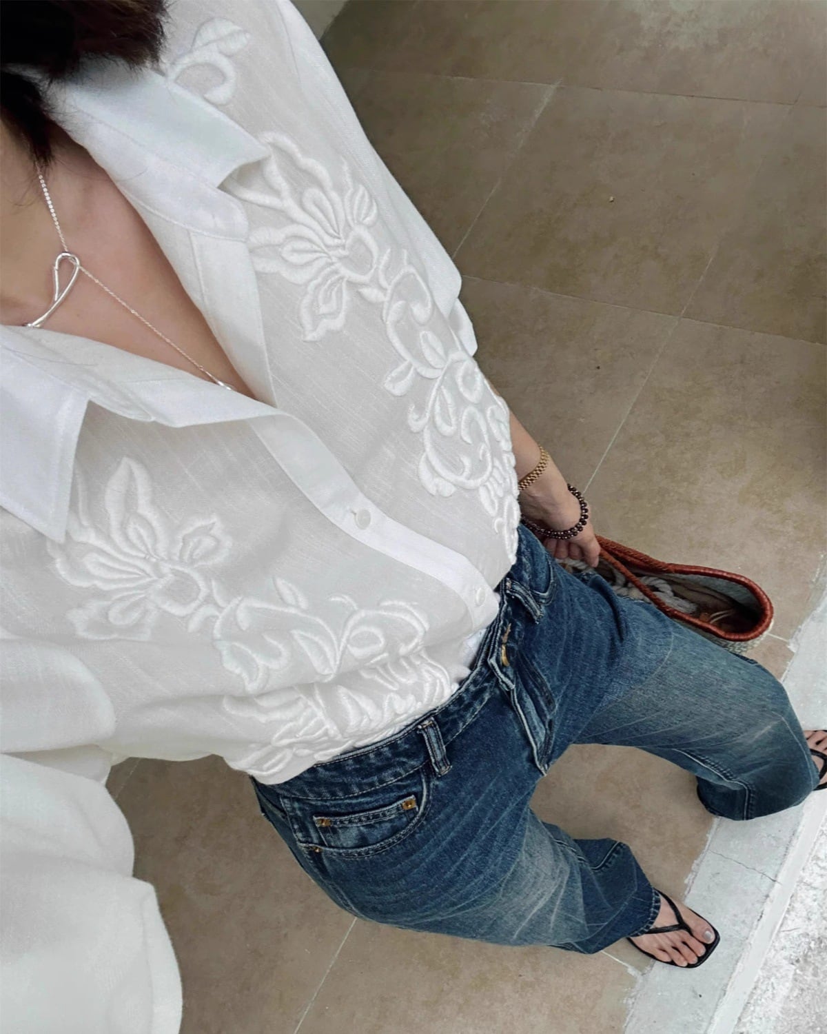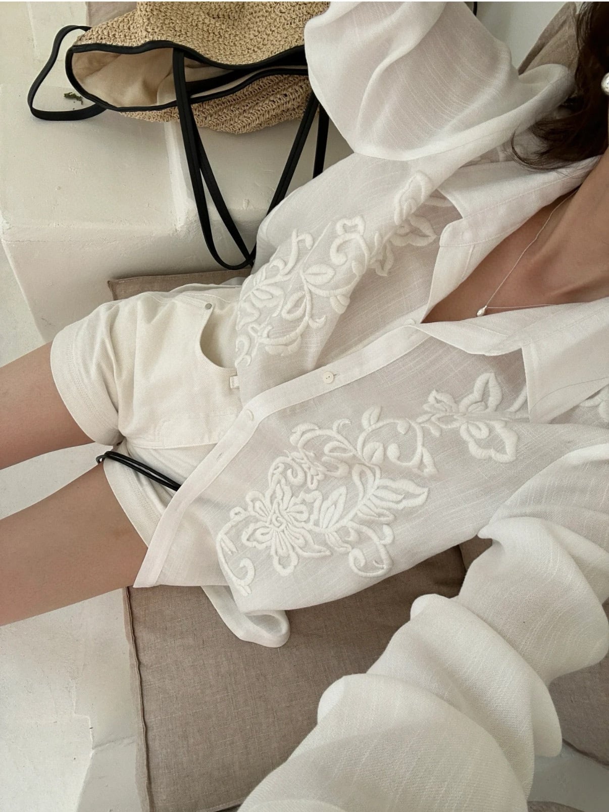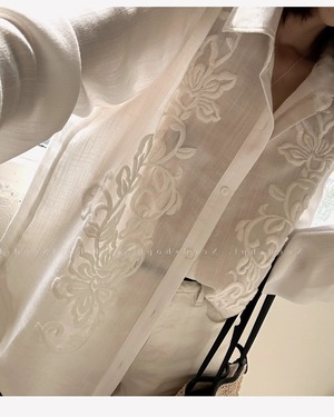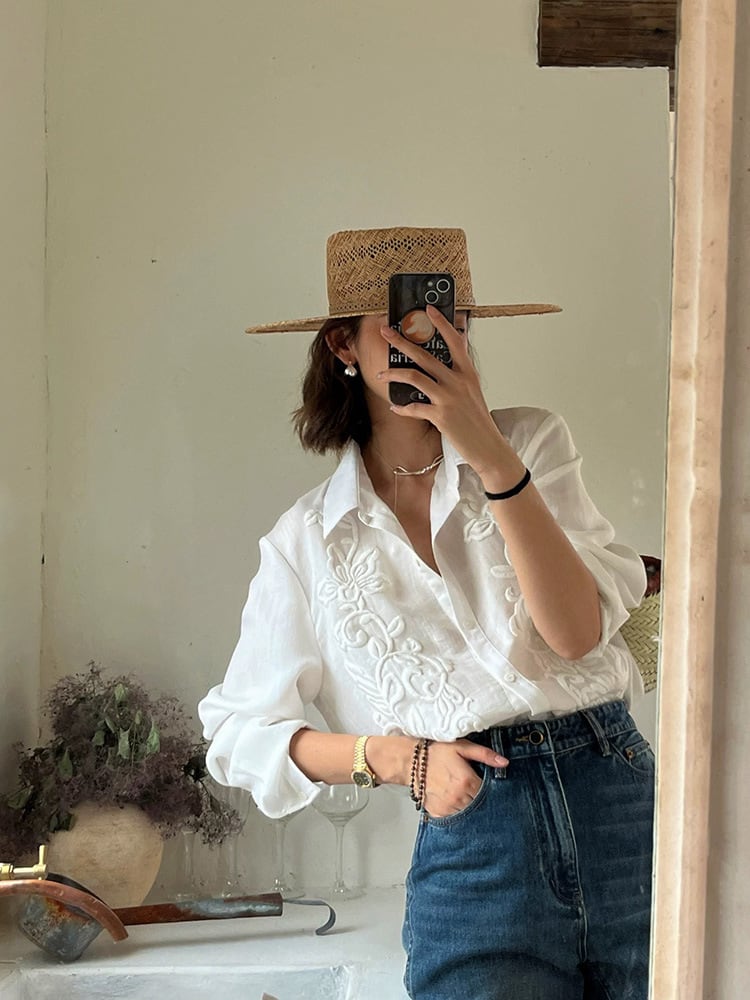リネンフレンチ刺繍シャツ 3353