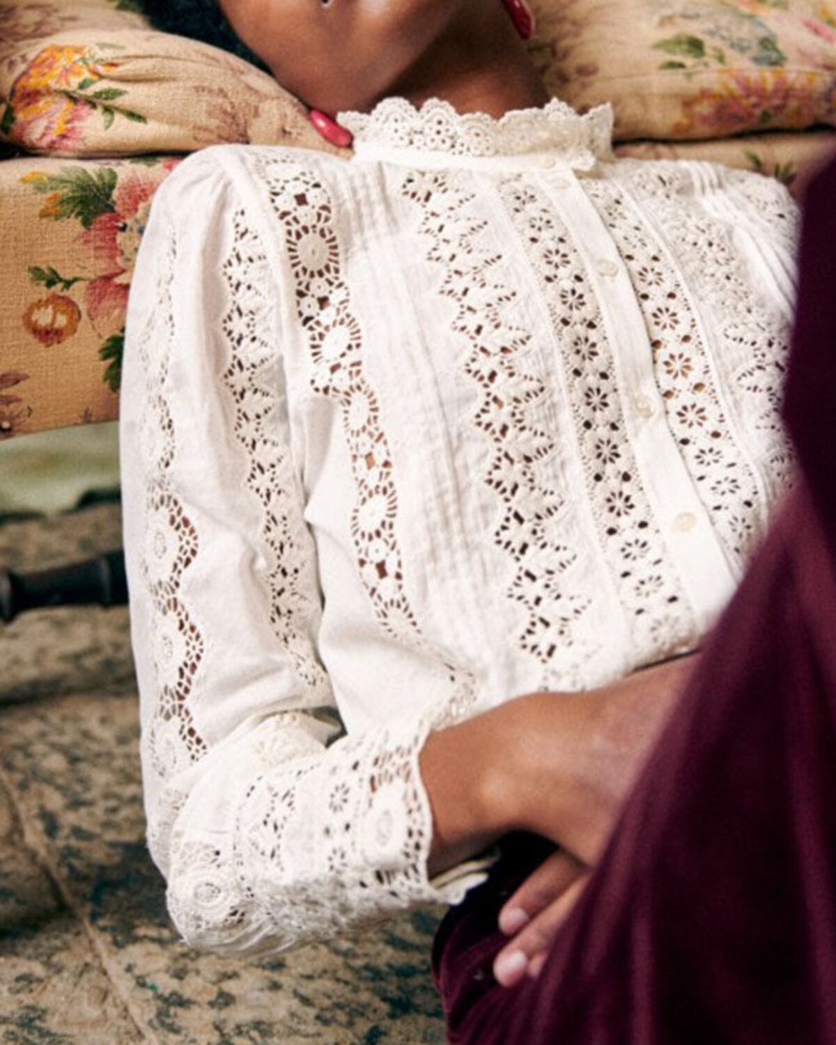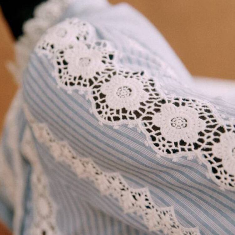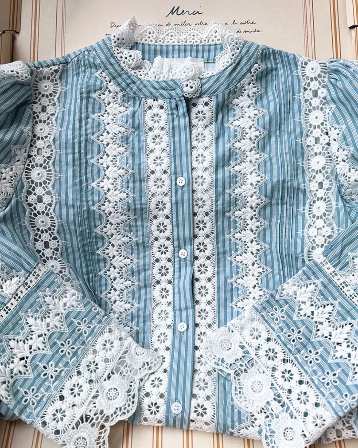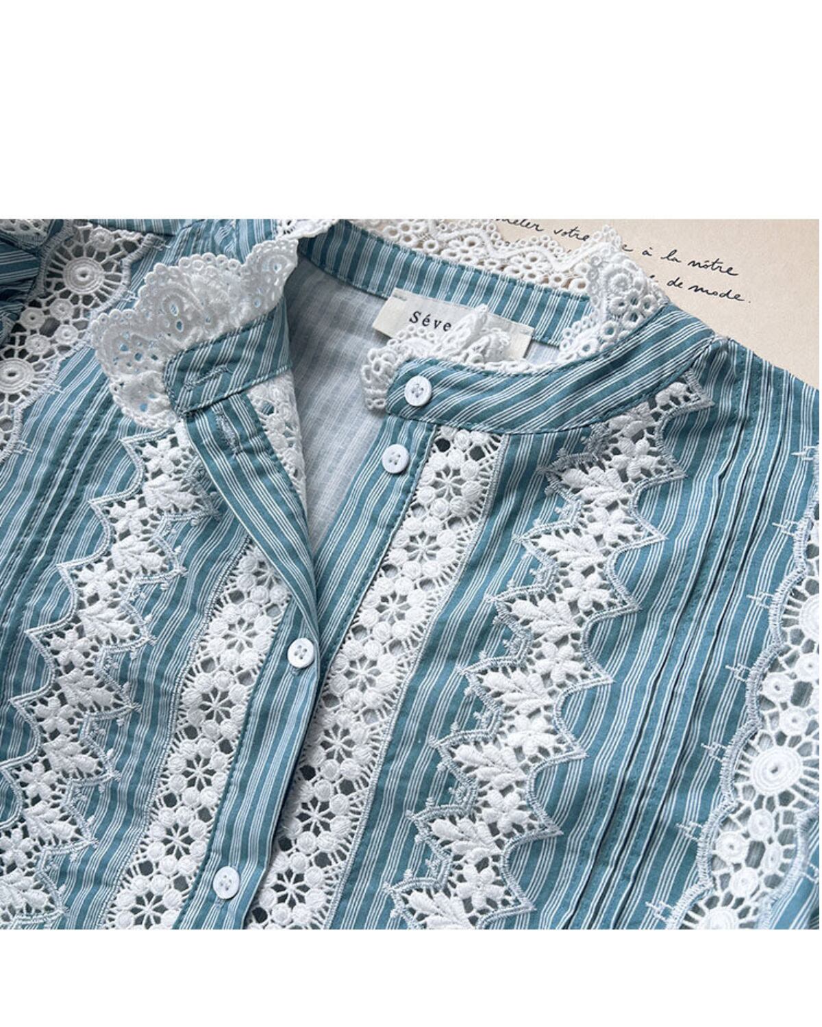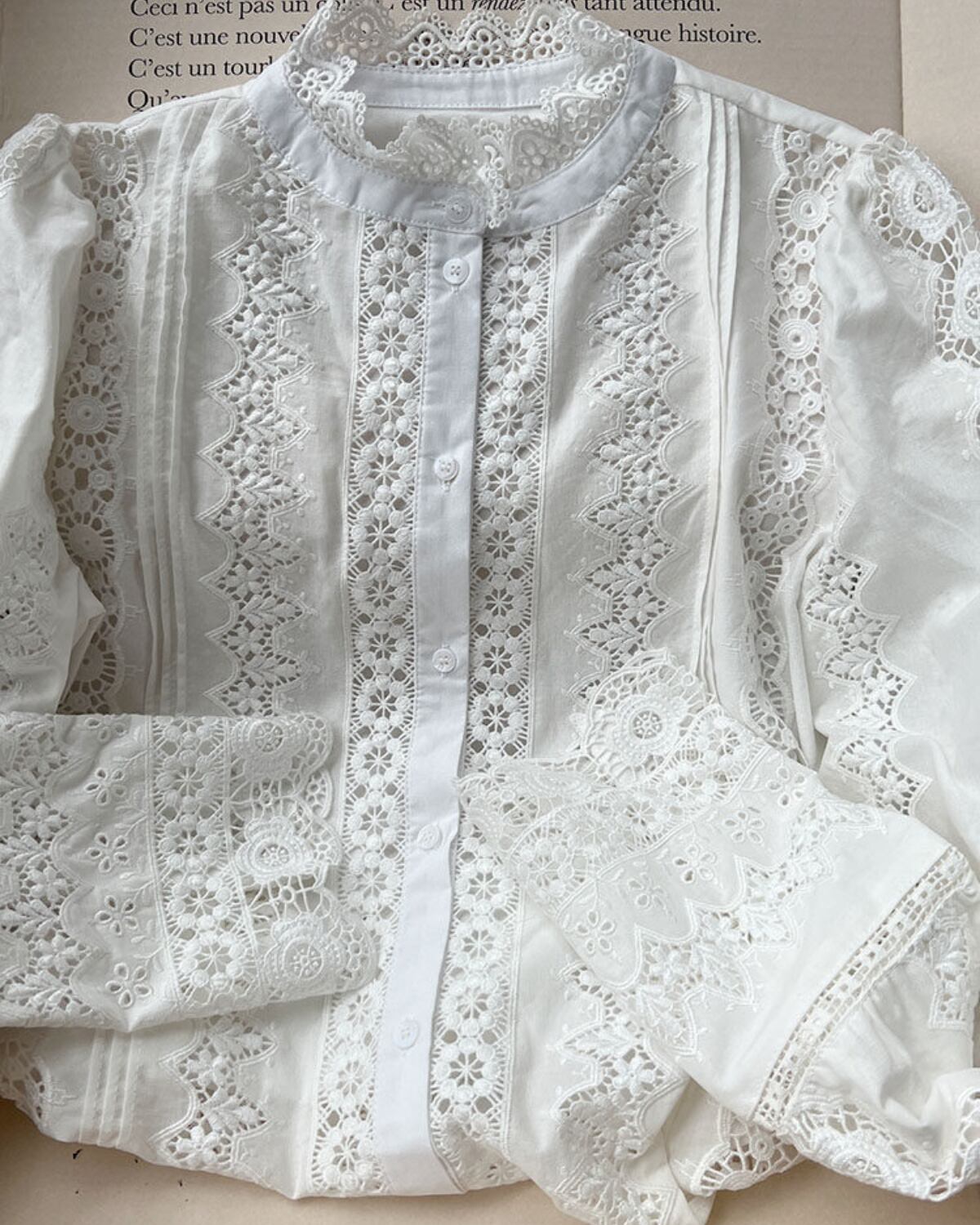 コットンリネンのフレンチフラワーレースブラウス 3399
