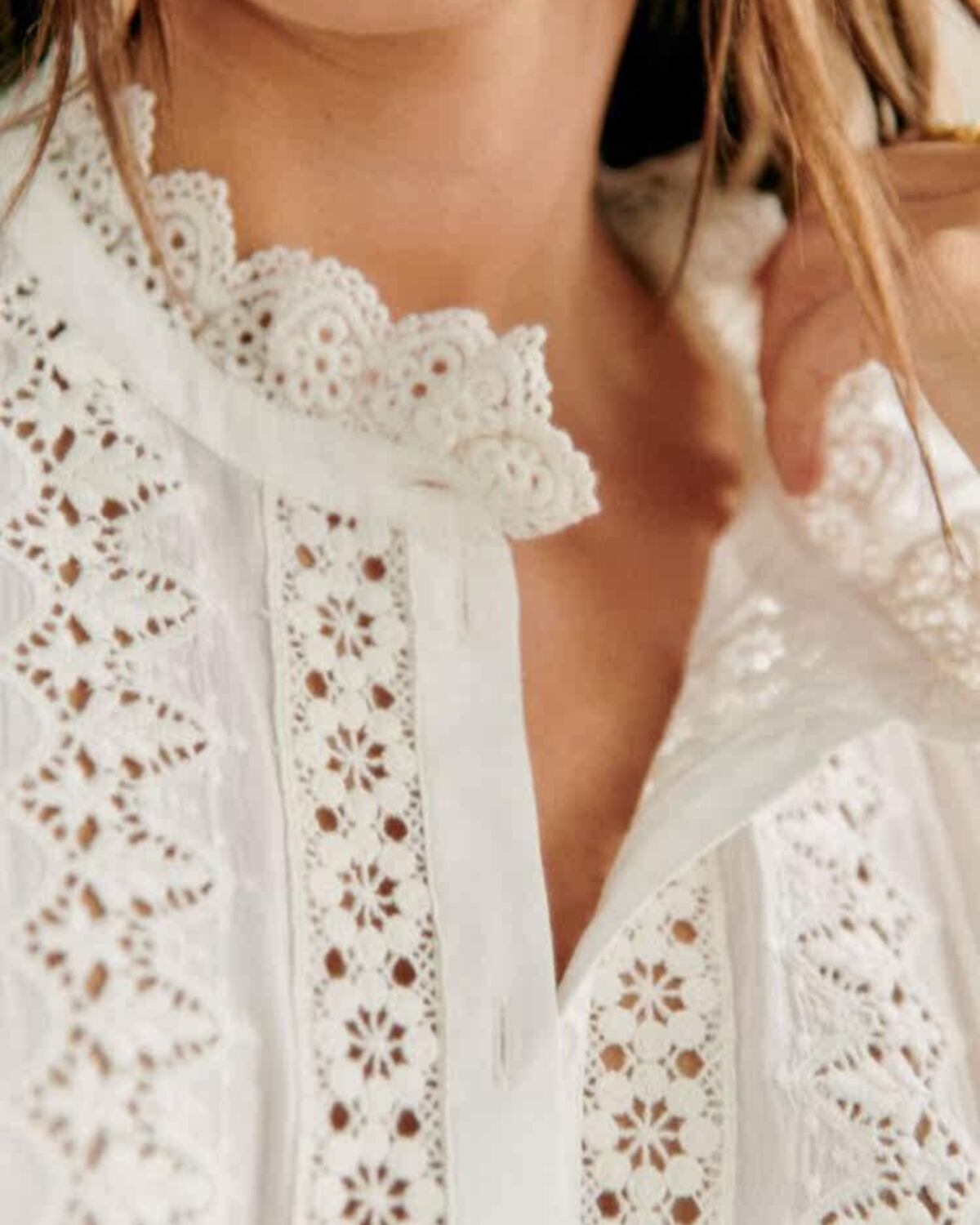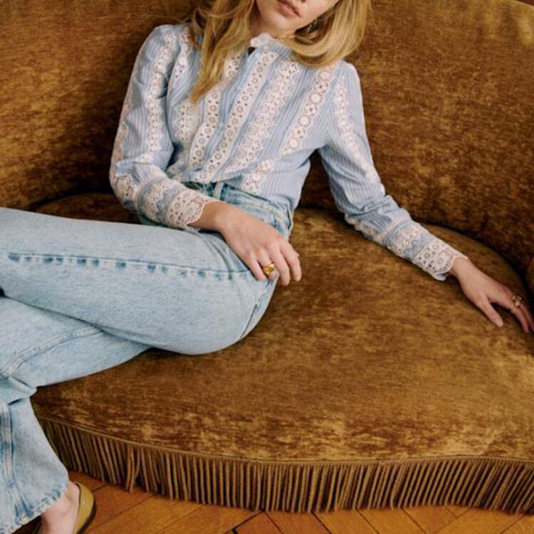 フレンチスタイルの魅力を引き出す、繊細なレースが特徴のブラウスです。コットンとリネンをブレンドした生地は、軽やかでありながら肌触りも抜群。涼しげなデザインで、これからの季節にぴったりな一着です。