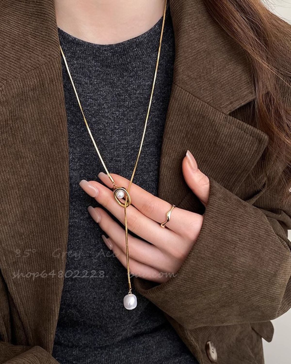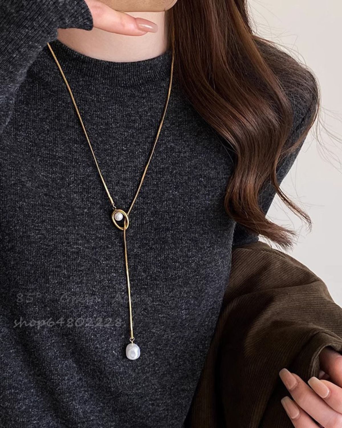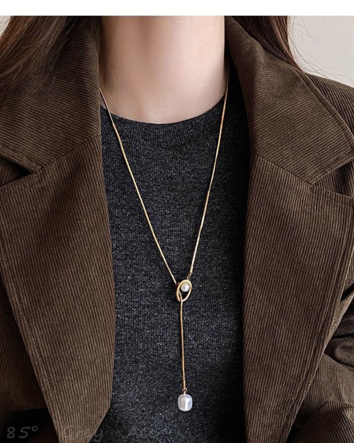 中央のパーツをスライドさせて長さを調節できる、パールをあしらったY字型のラリエット(ロングネックレス)です。一粒パールを配した上品なスタイルで、卒業式や入学式などのフォーマルから日常使いまで幅広く活用できます。
