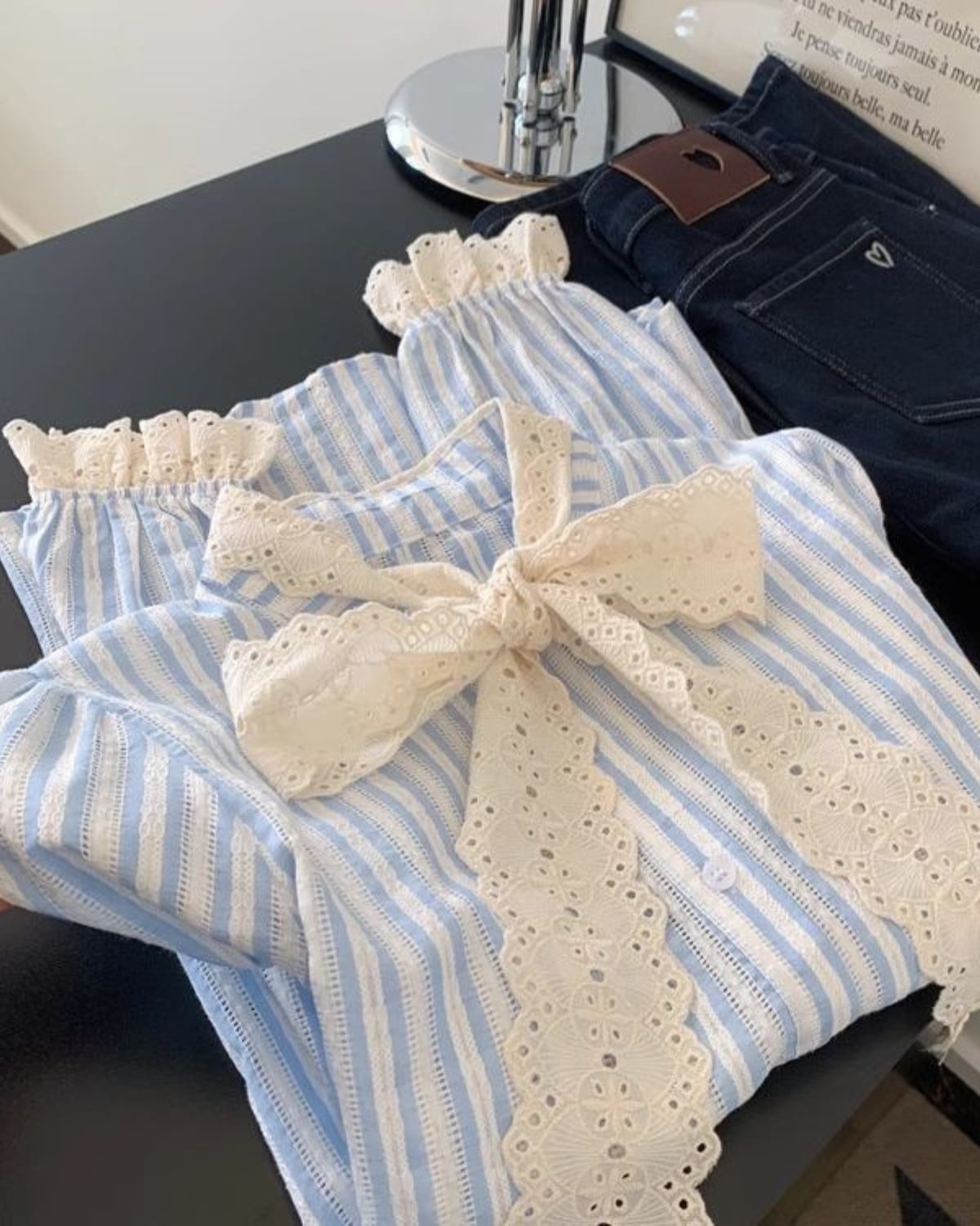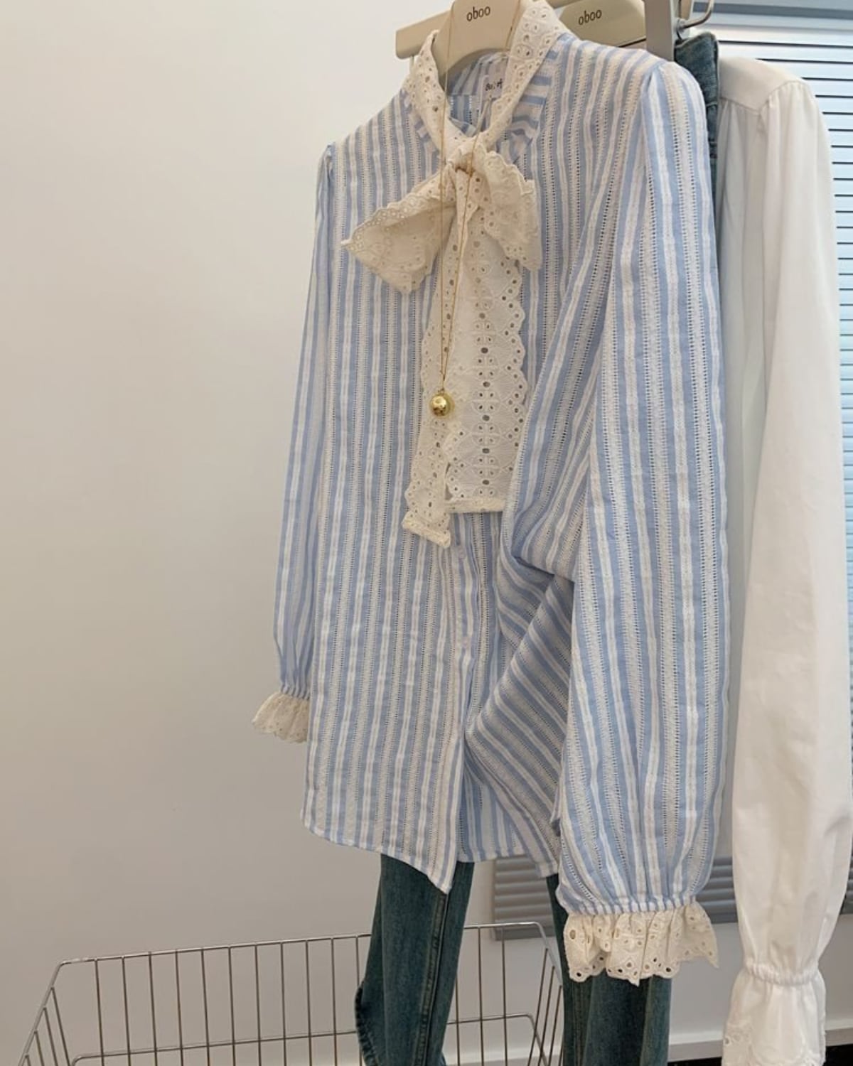 レースリボンストライプブラウス
