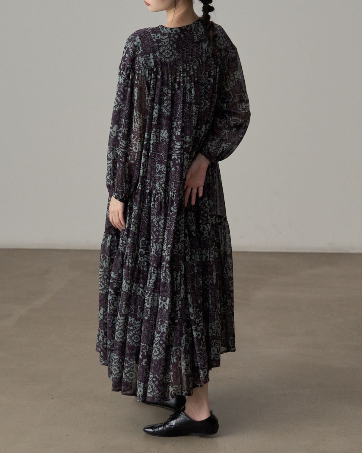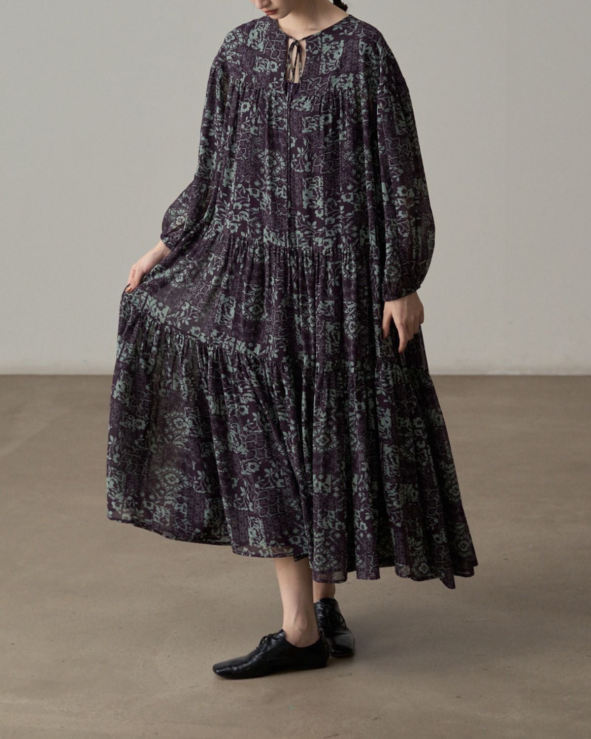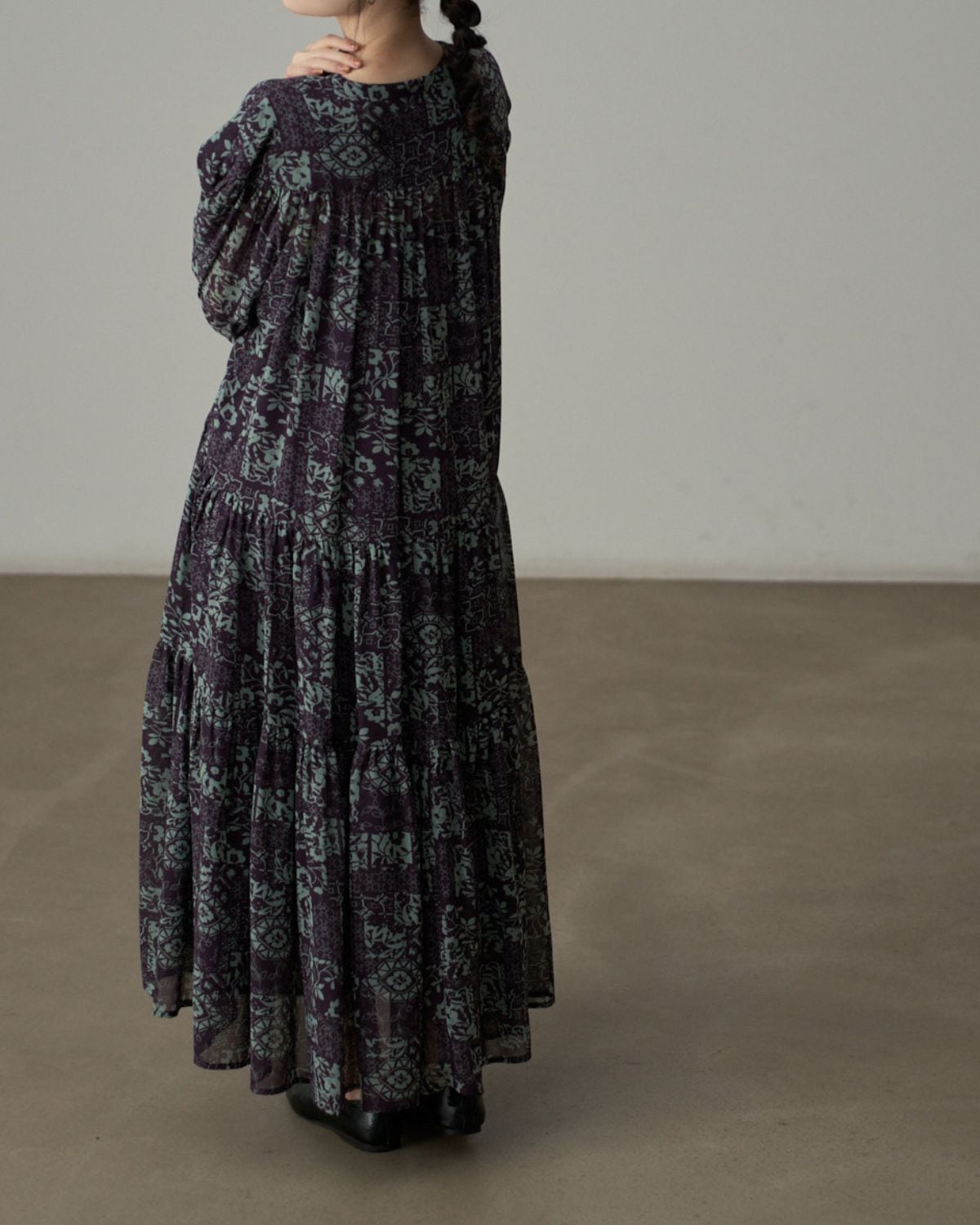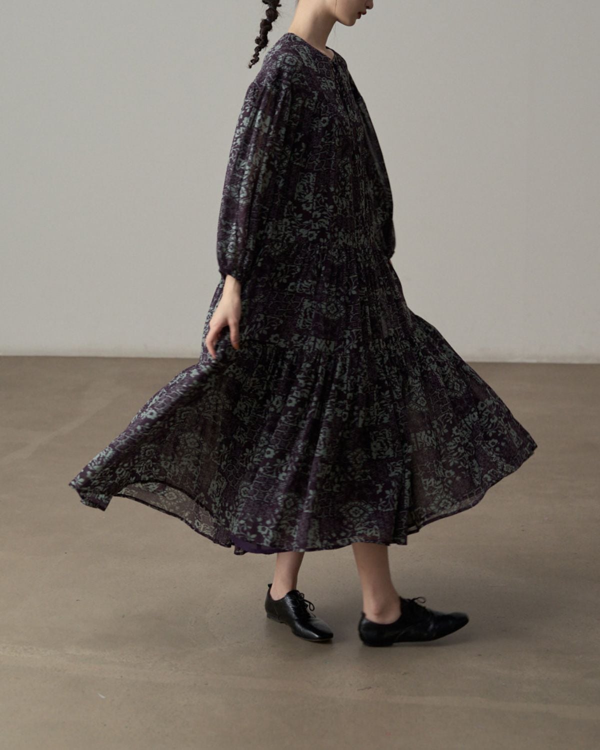 レトロな雰囲気のトーテム柄が特徴の、ゆったりとしたシルエットのワンピースです。