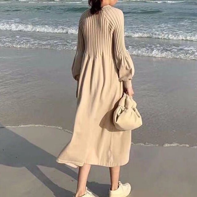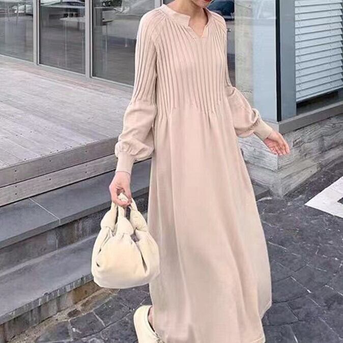 柔らかなニット素材で暖かさもバツグン、さらにプリーツのスカートが華やかさを演出します。