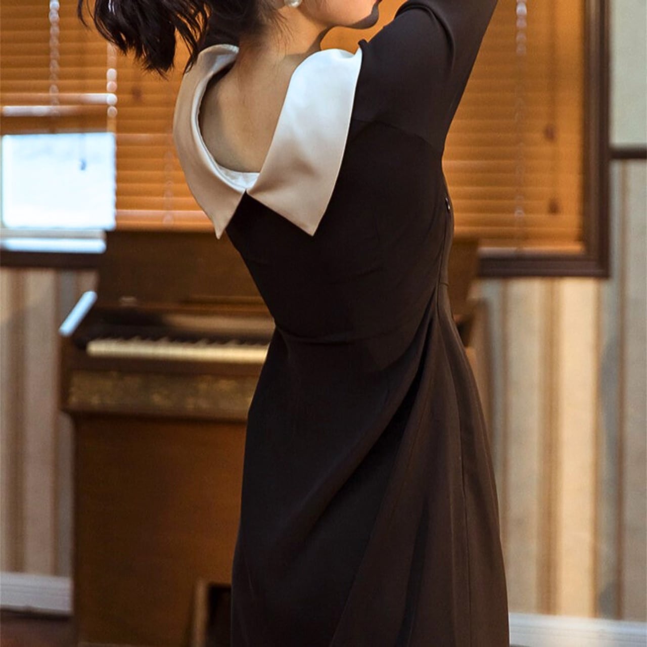 バイカラーオフショルダースリムワンピース 2230