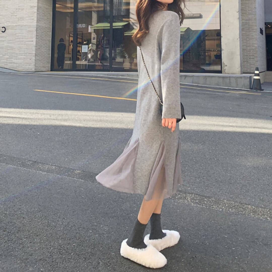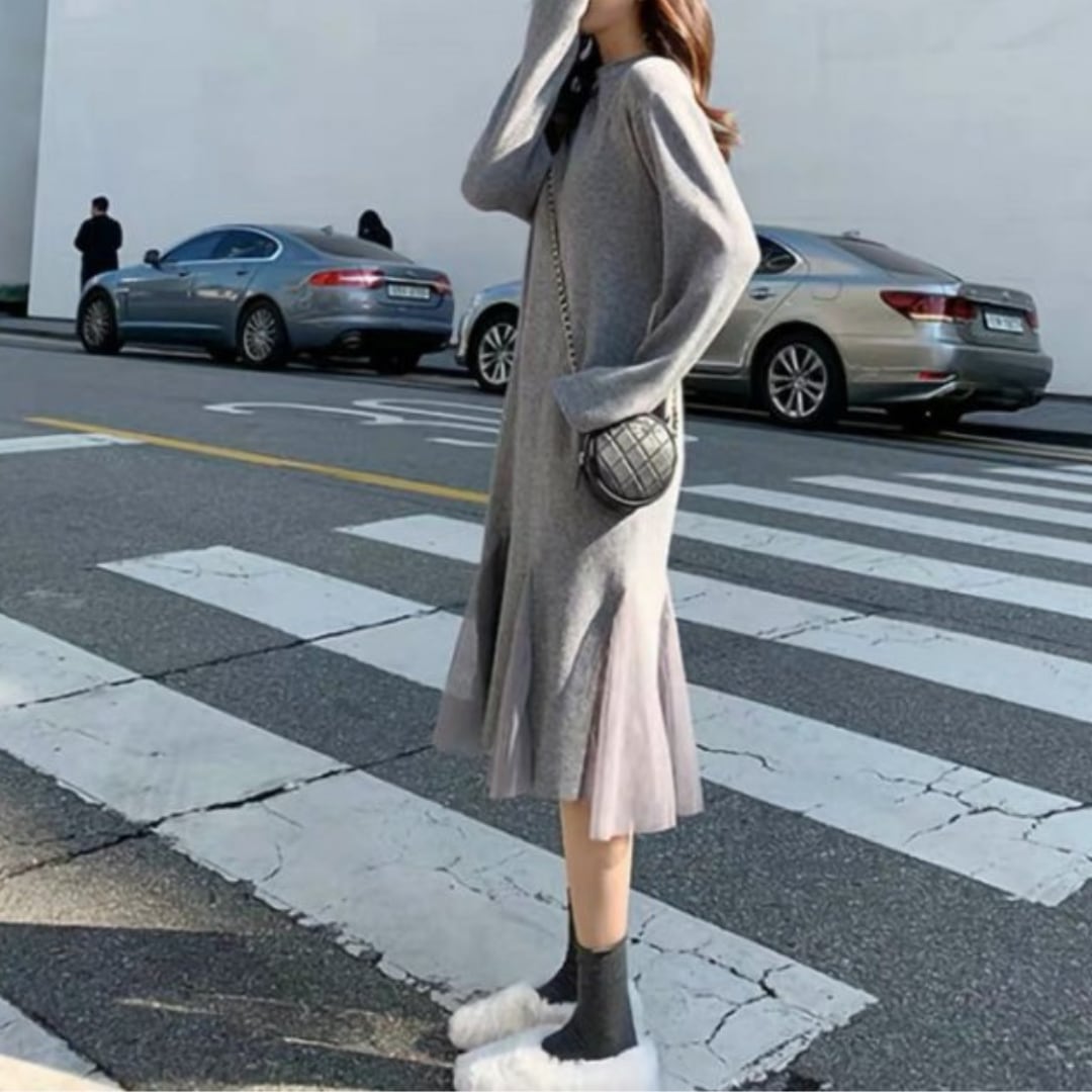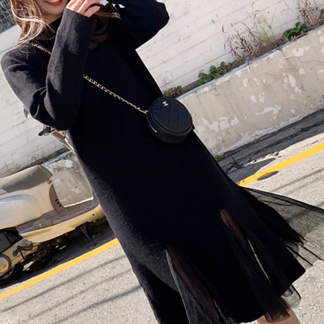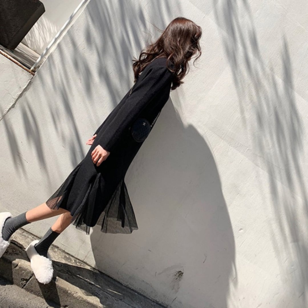 裾チュールフリル美シルエットワンピース 2593
