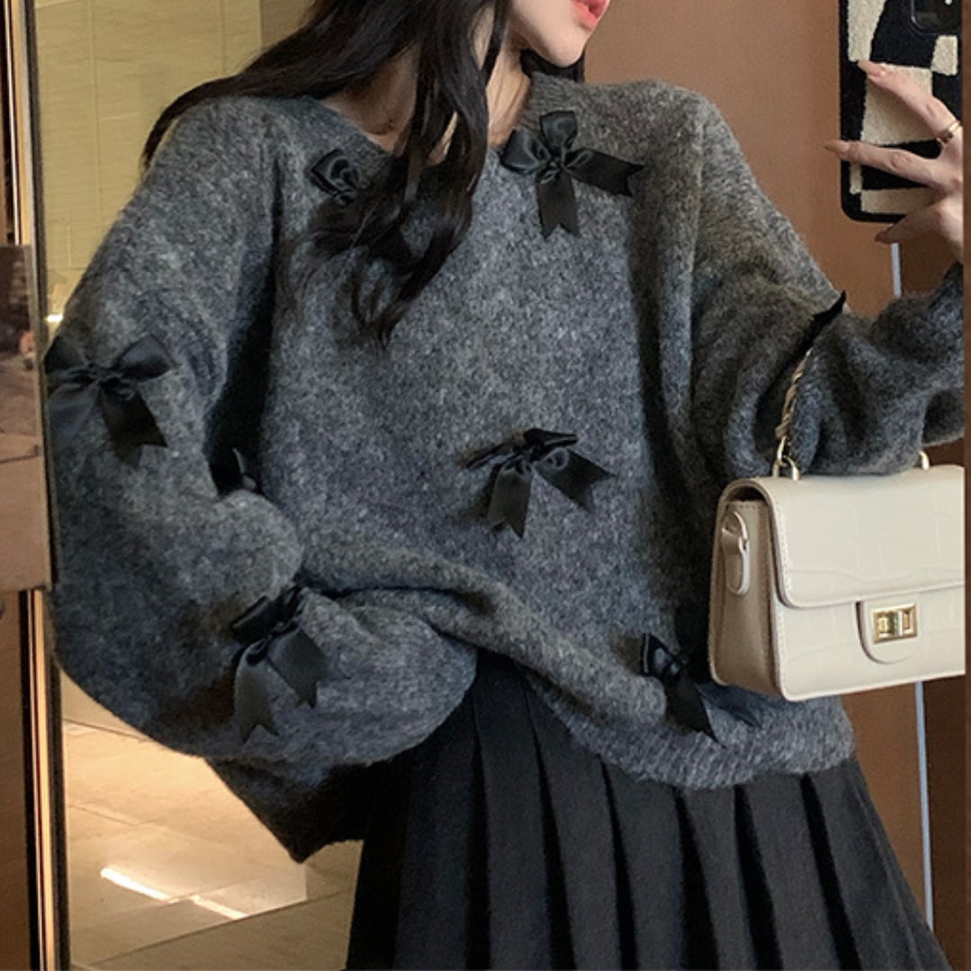 ブラックリボンゆったりウールセーター 2596