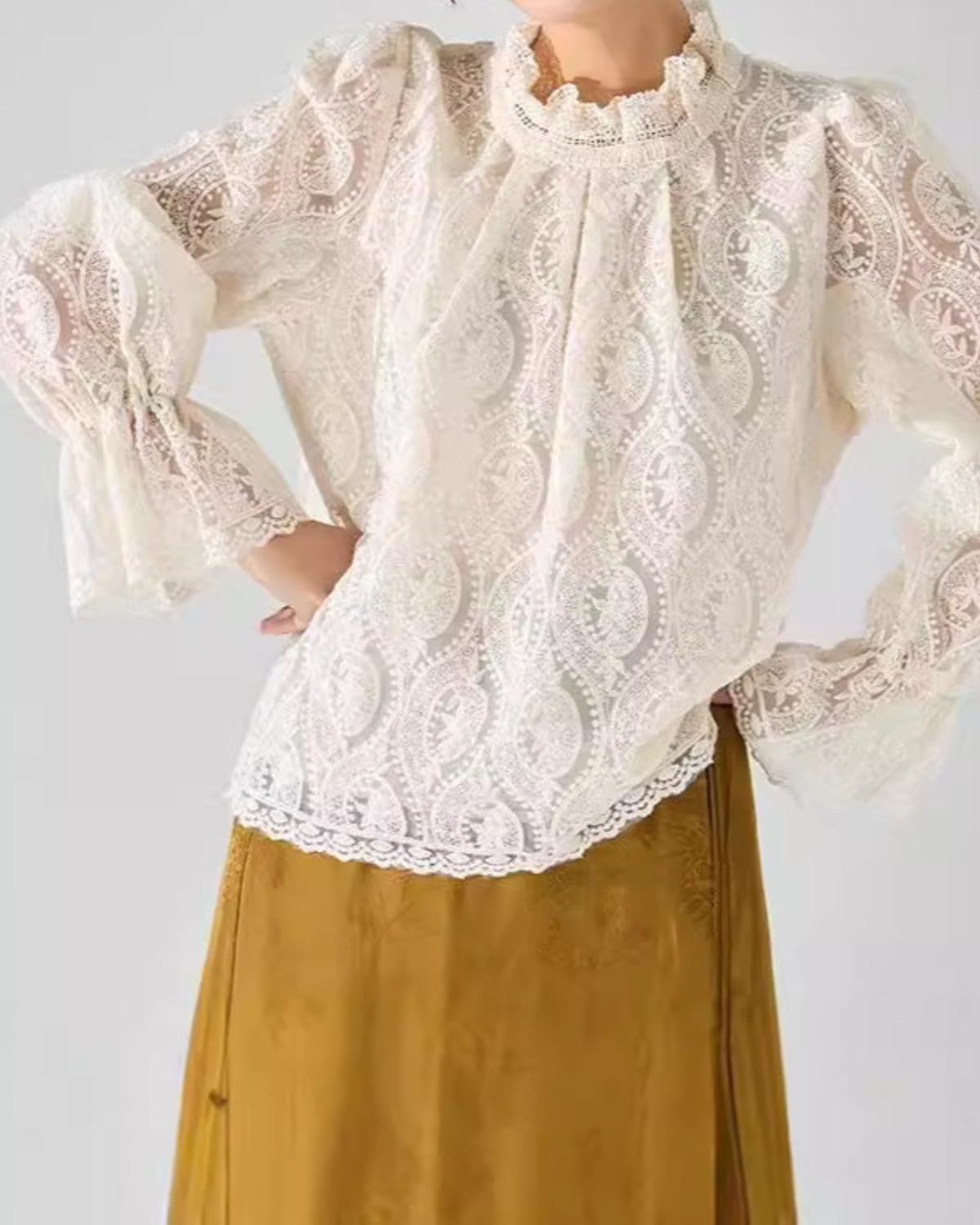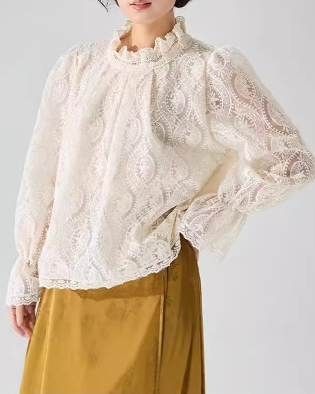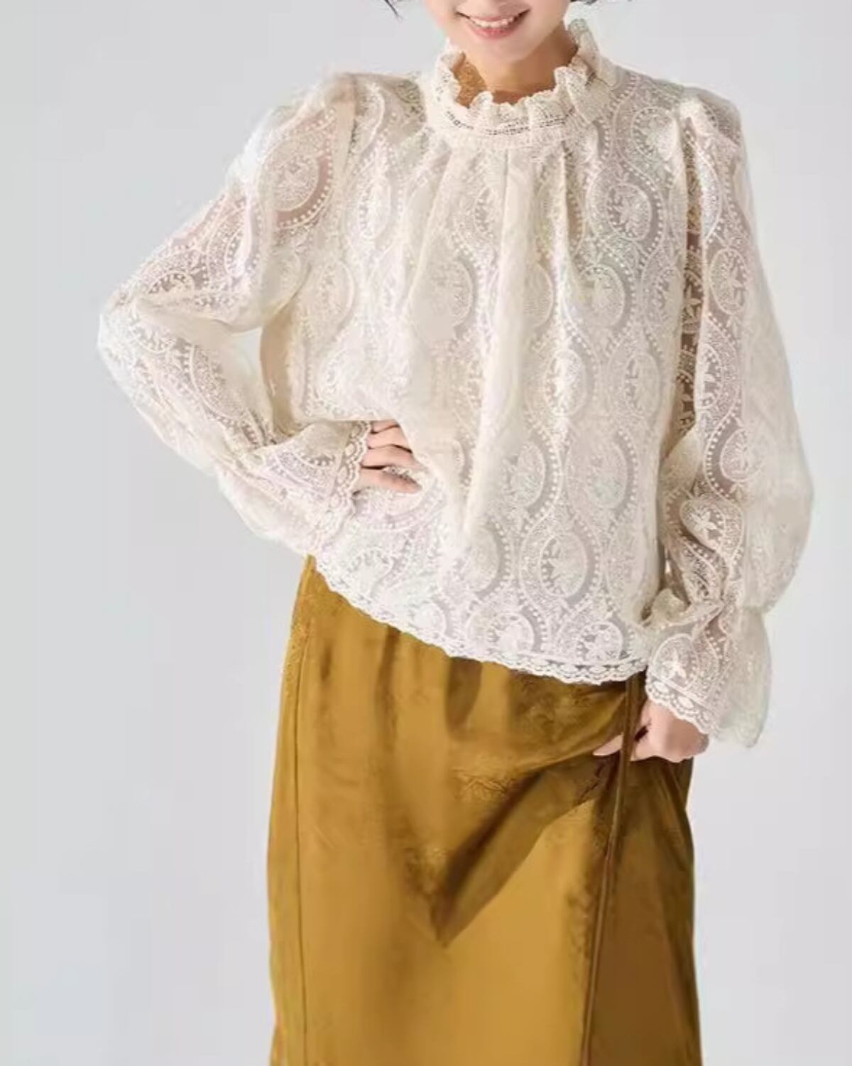 スタンドネック総レースブラウス 2669