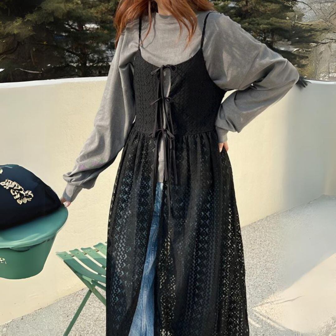 フロントリボンレースワンピースジレ 2677