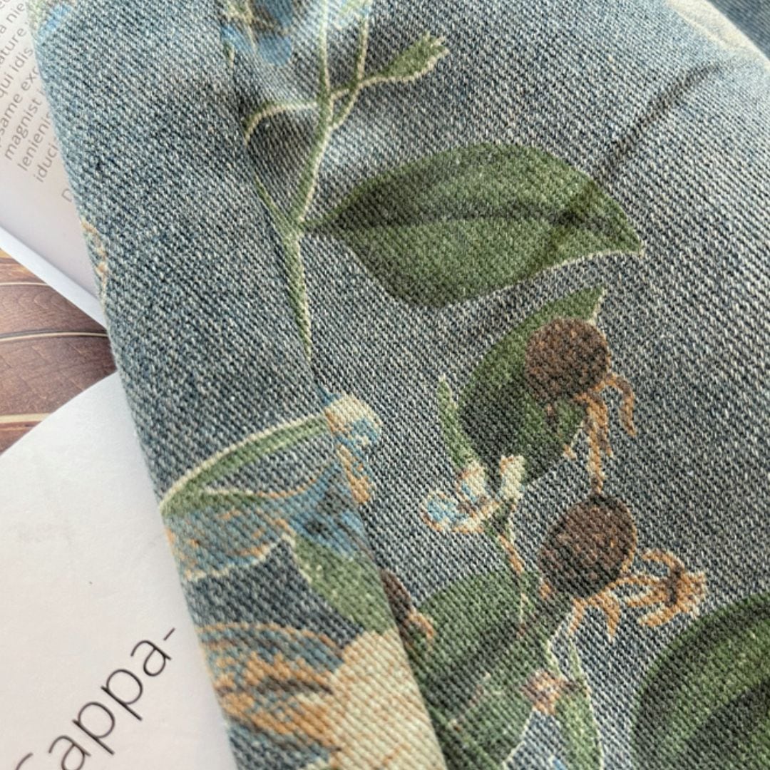 フラワープリントフェミニンデニムパンツ 2813