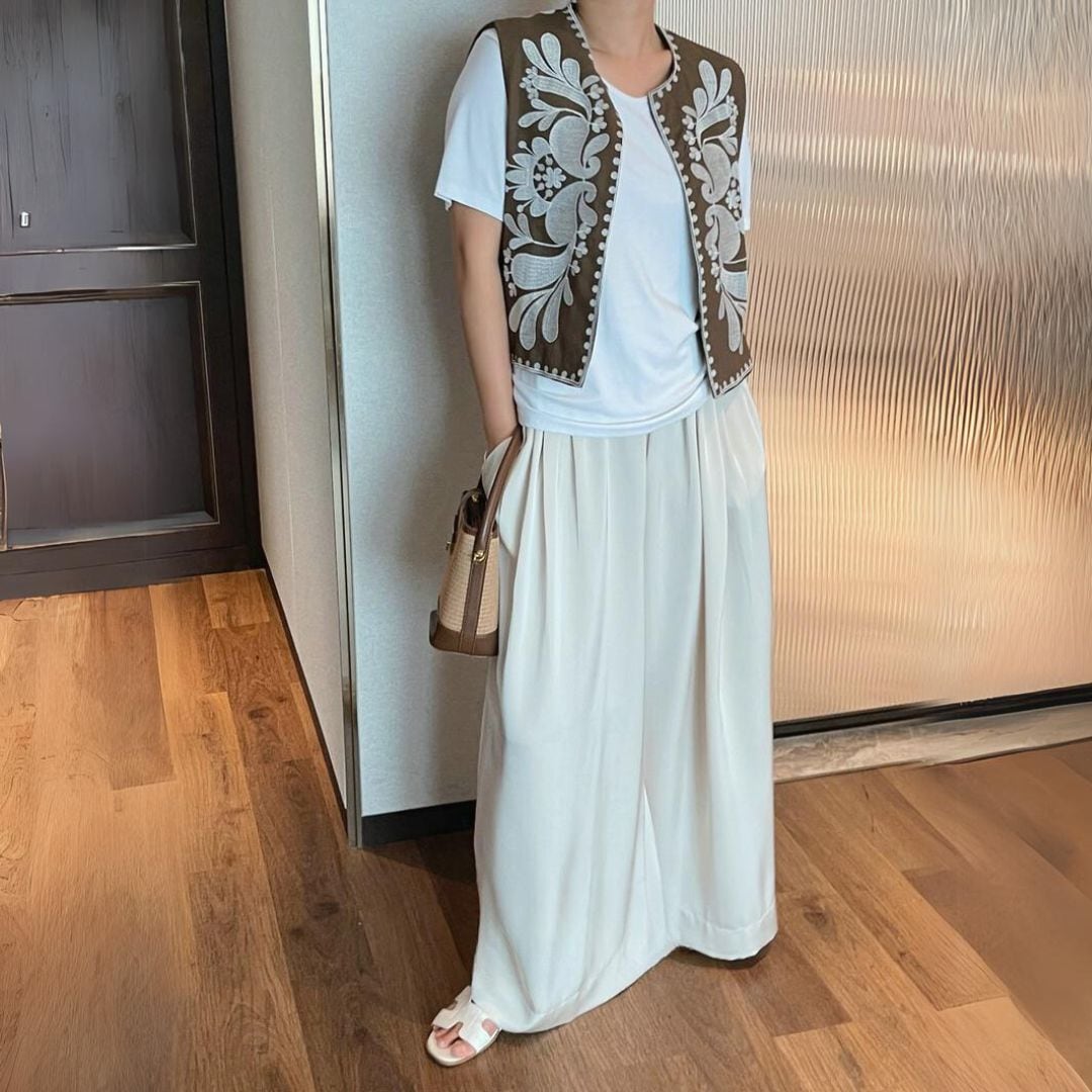 ツートンカラーボヘミアン刺繍ベストトップス 2815