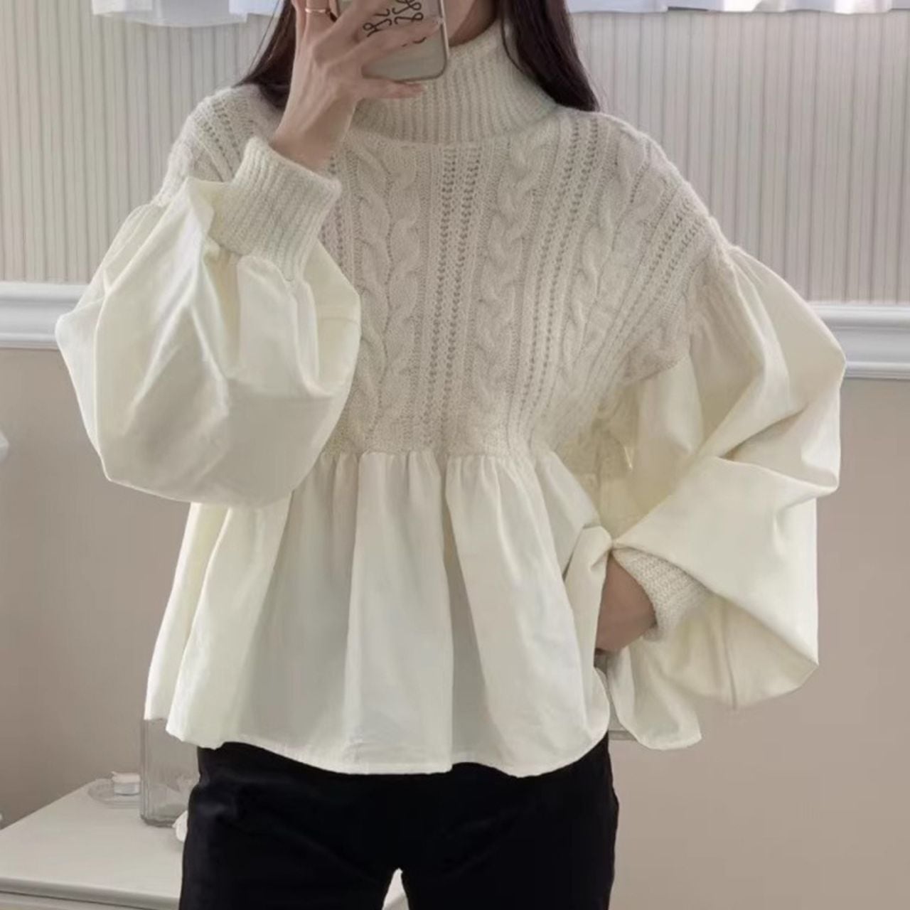 バルーン袖&ケーブル編みドッキングニット 3065
