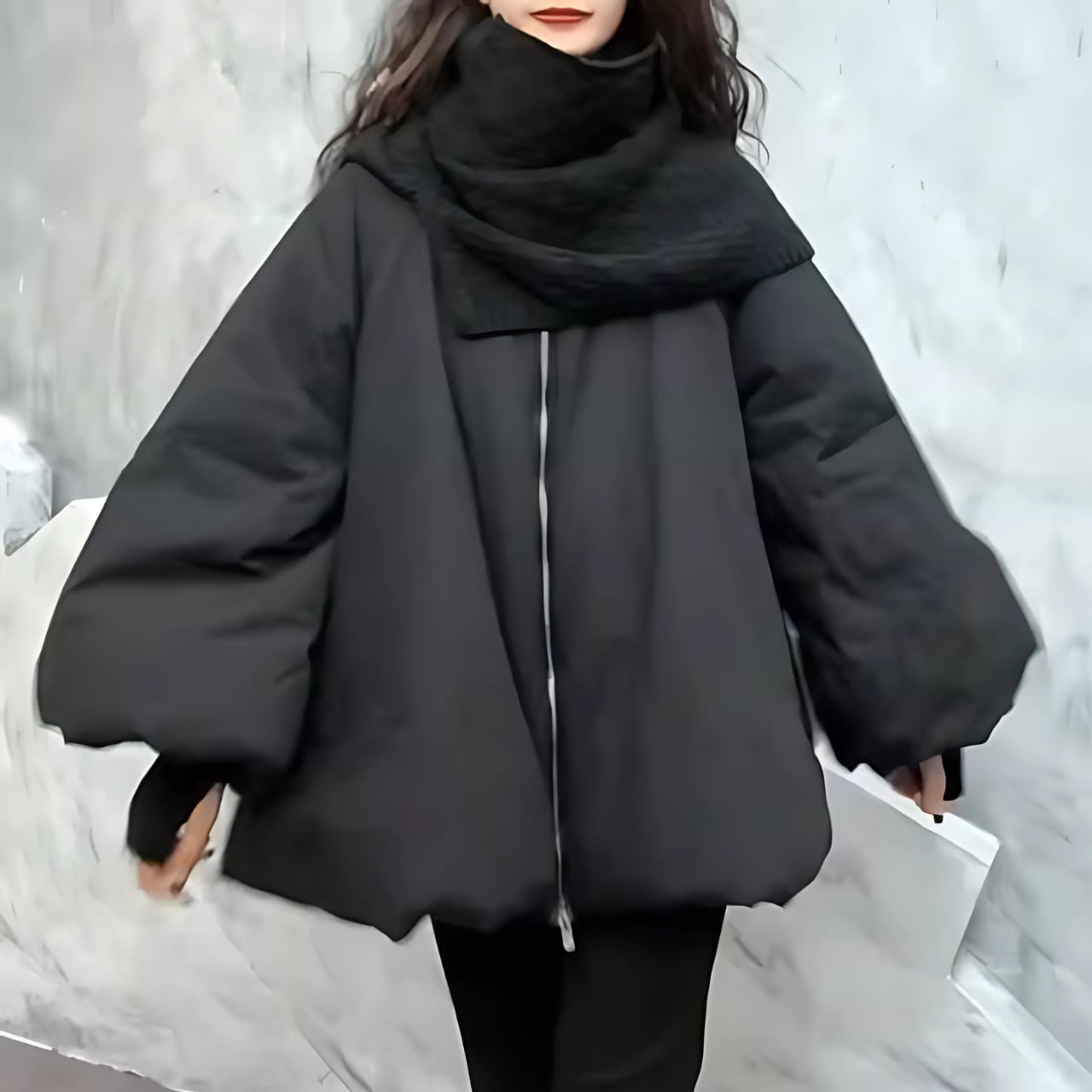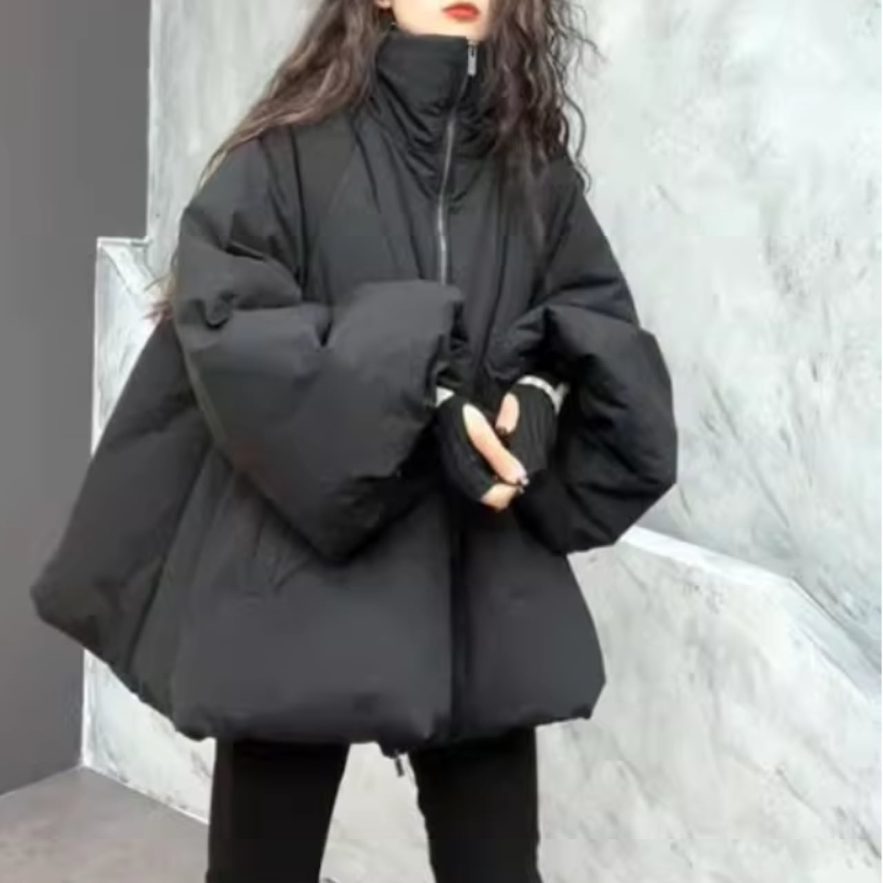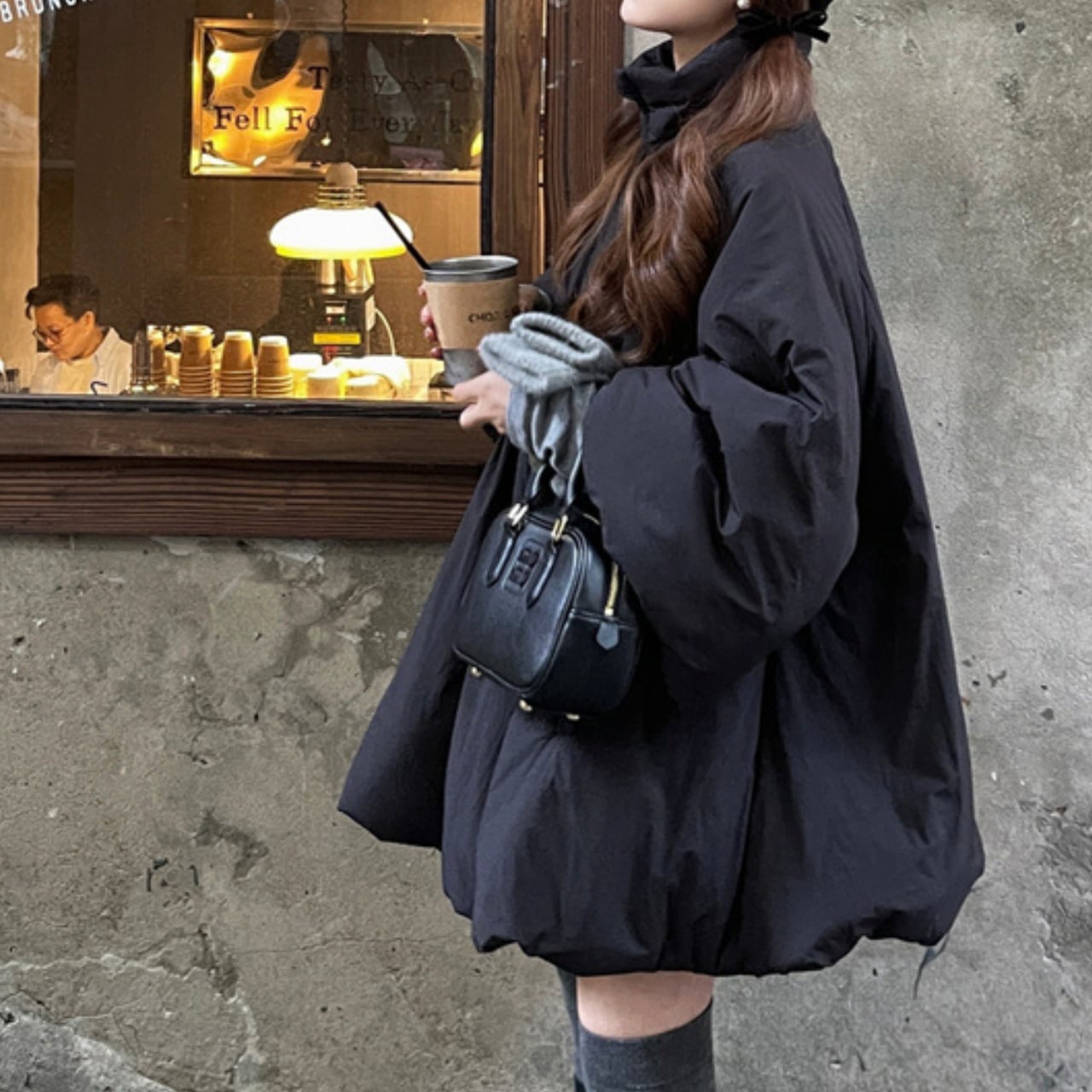 ふんわりとしたポンチョデザインが特徴の中綿コート。